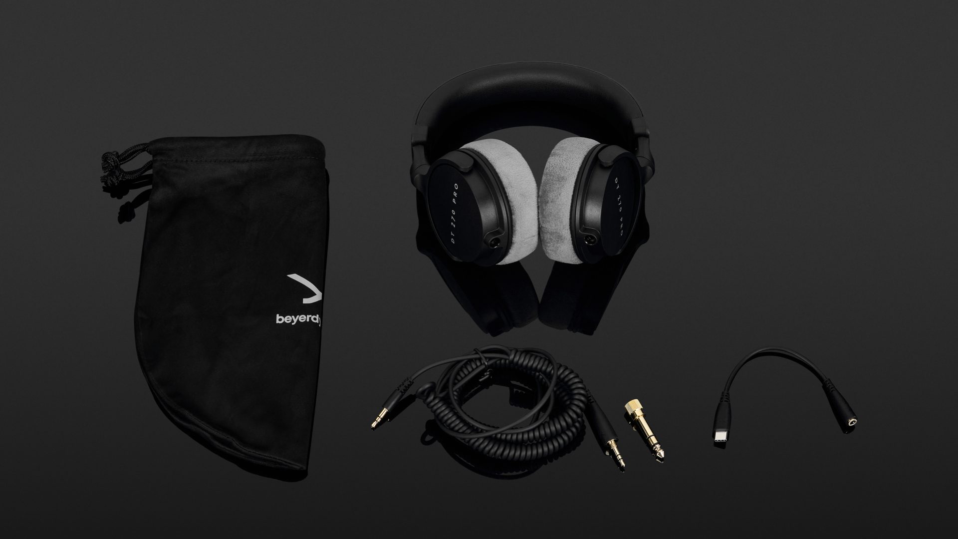 Auch ein USB-C-auf-3,5-mm-Adapter ist enthalten, mit dem der DT 270 PRO an einem Smartphone zum Einsatz kommen kann. Passend dazu ist das Wechselkabel mit 3,5-mm-Steckern ausgestattet. Um es dennoch auch an großen Klinkenbuchsen verwenden zu können, liegt ein Steckadapter bei. Er ist – ebenso wie sämtliche Stecker – zum Korrosionsschutz vergoldet und garantiert so eine kratzfreie Verbindung. Damit der Kopfhörer bei Lagerung und Transport gegen Staub und Schmutz geschützt werden kann, liegt außerdem ein Aufbewahrungsbeutel mit Kordelzug bei.