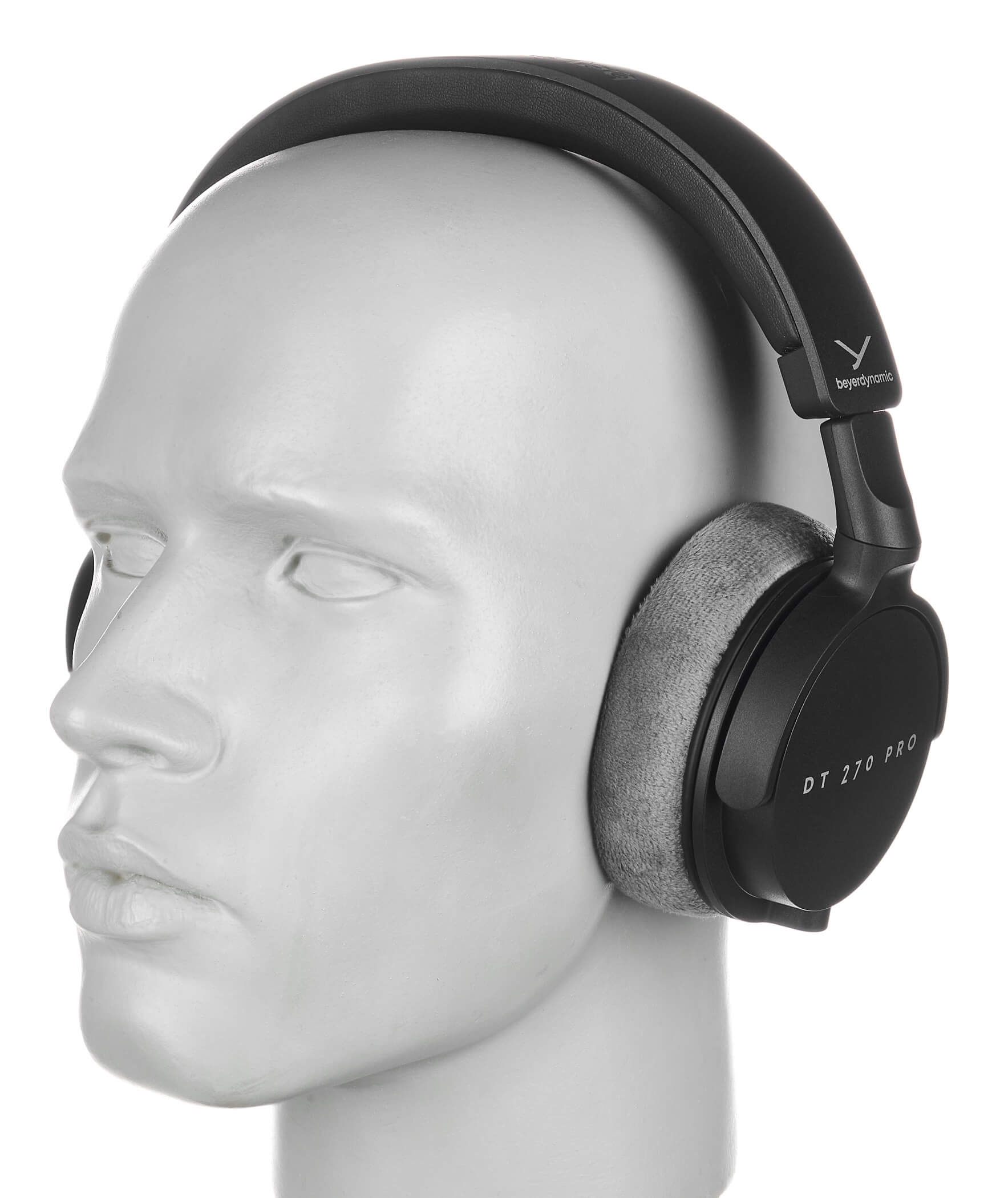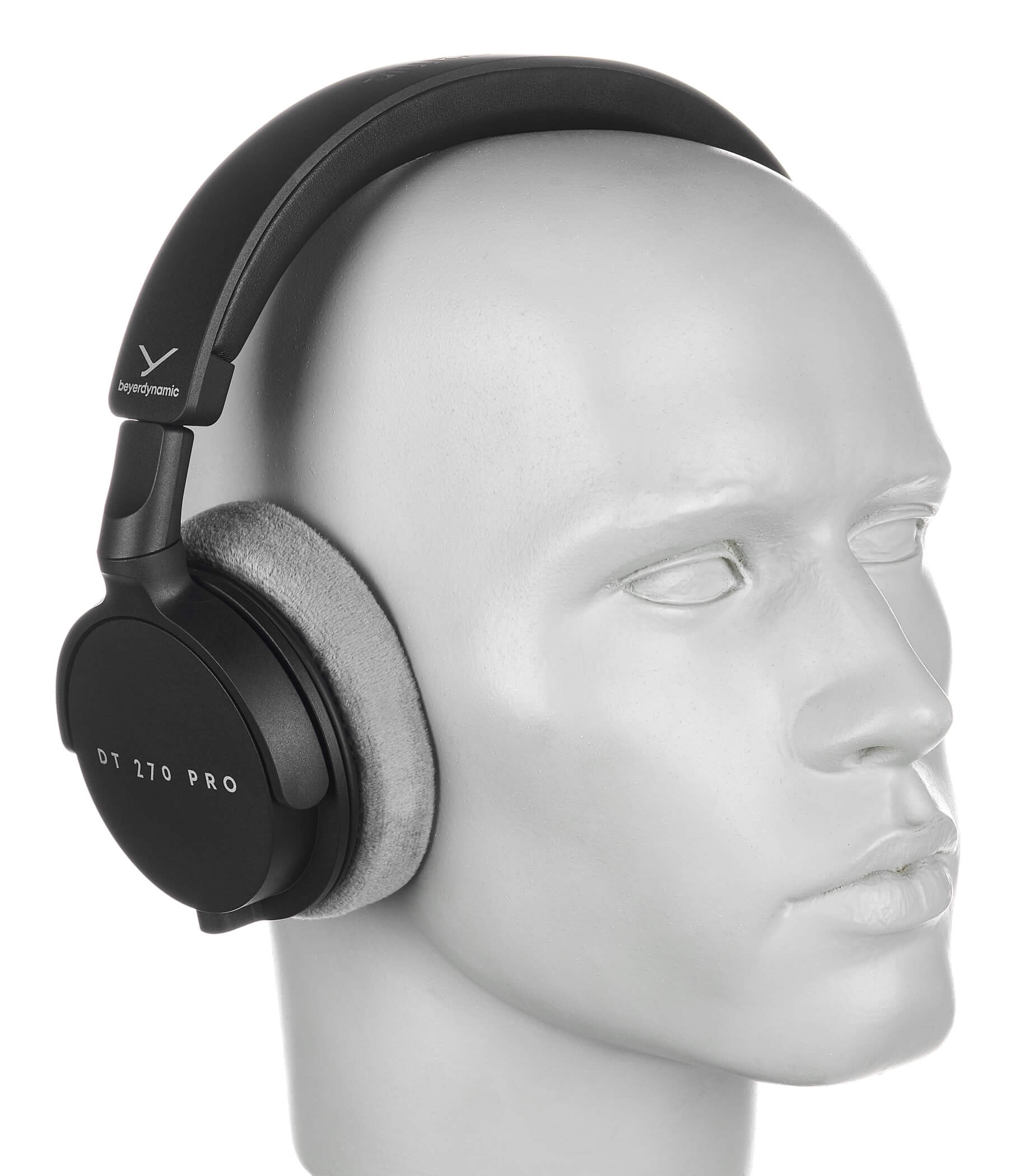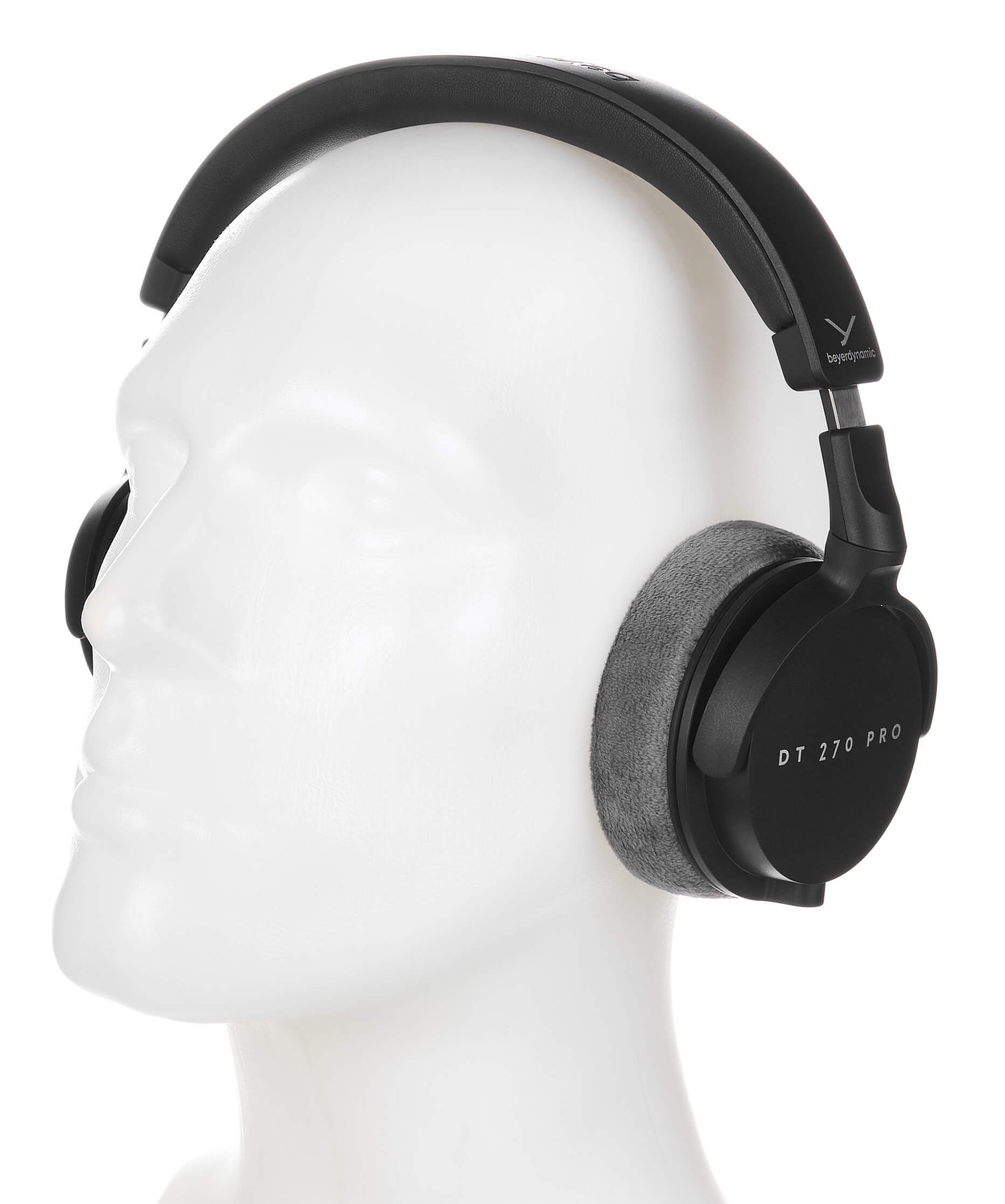 Doch nicht nur das geringe Gewicht des Beyerdynamic DT 270 PRO macht seinen Sitz auch über längere Zeiträume komfortabel. Seine weichen, atmungsaktiven Velours-Ohrpolster erinnern an die Qualität seiner großen Geschwister. Der gepolsterte Kopfbügel nimmt ihm beim Aufsetzen den Druck. Die drehbaren Hörschalen passen sich gut an die Kopfform an und bieten gemeinsam mit der Größenverstellung einen sicheren Sitz – ganz ohne zu drücken.