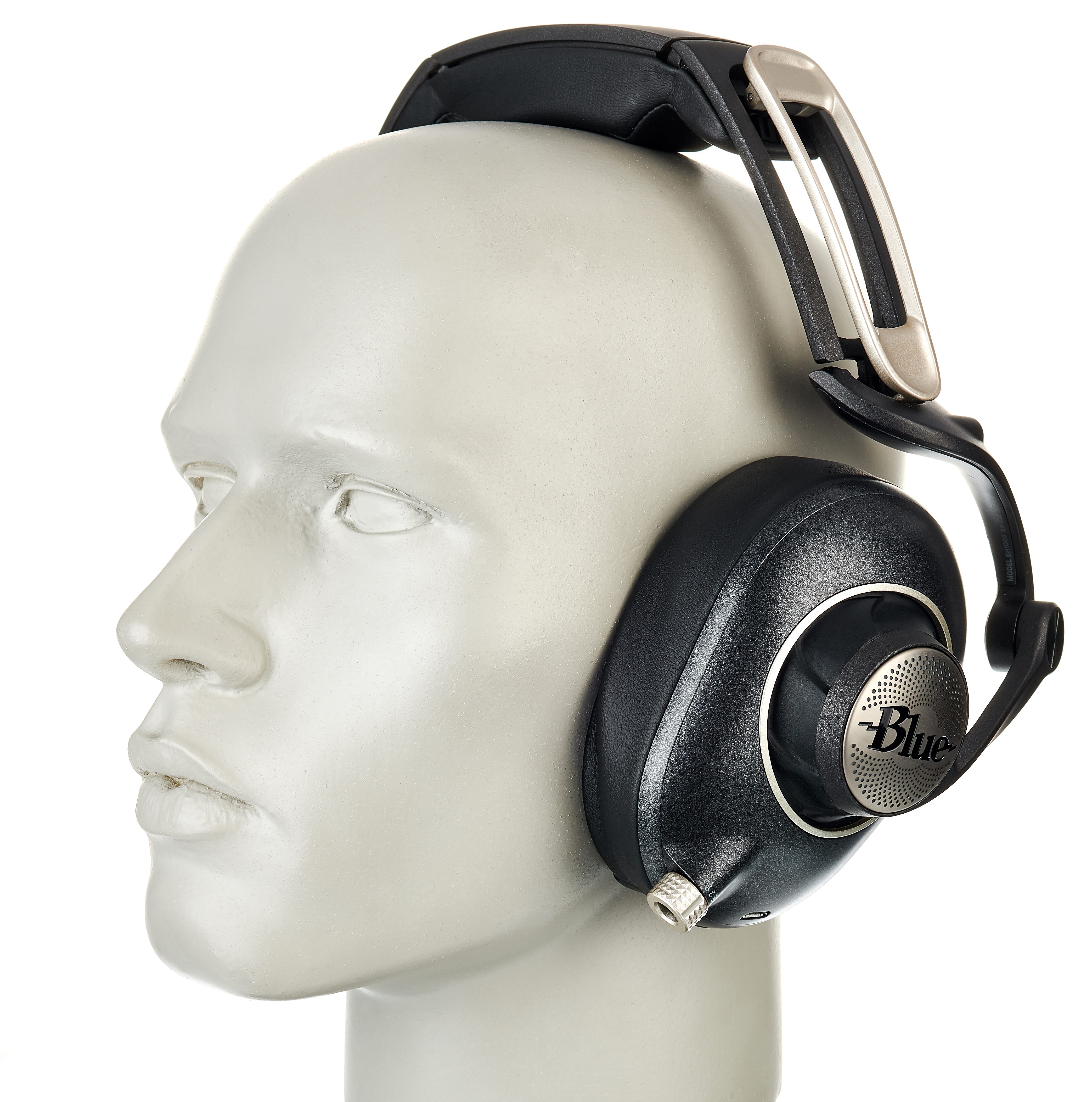 Der Auftritt des Kopfhörers selbst ist auffällig. Die Mechanik des Kopfbügels wurde von Blue eigens für seine Kopfhörer-Serie entwickelt und ist ein echter Blickfang. Stabile Gussmetall-Streben halten die Hörmuscheln. Eine Kombination verschiedener Gelenke justiert gleichmäßig die horizontale Anpassung an verschiedene Kopfbreiten und arretiert zugleich die vertikale Ausrichtung der Hörschalen. Für eine akustisch entkoppelte Aufhängung der Hörschalen sorgt eine elastische Gummi-Manschette. Die Polsterung des Kopfbandes sowie die Ohrpolster sind aus superweichem, hochwertigem Echtleder. Leider sind die Ohrpolster aber nicht wechselbar.