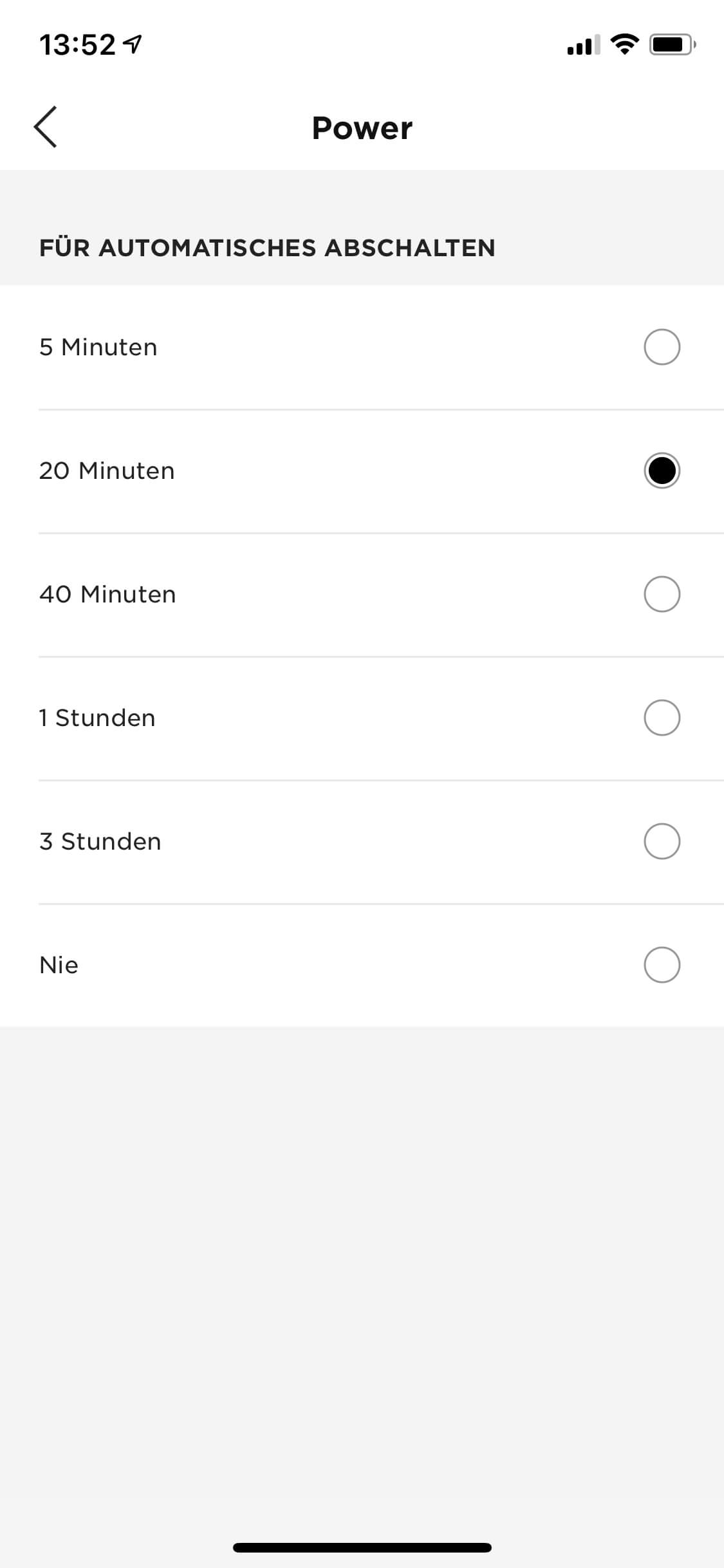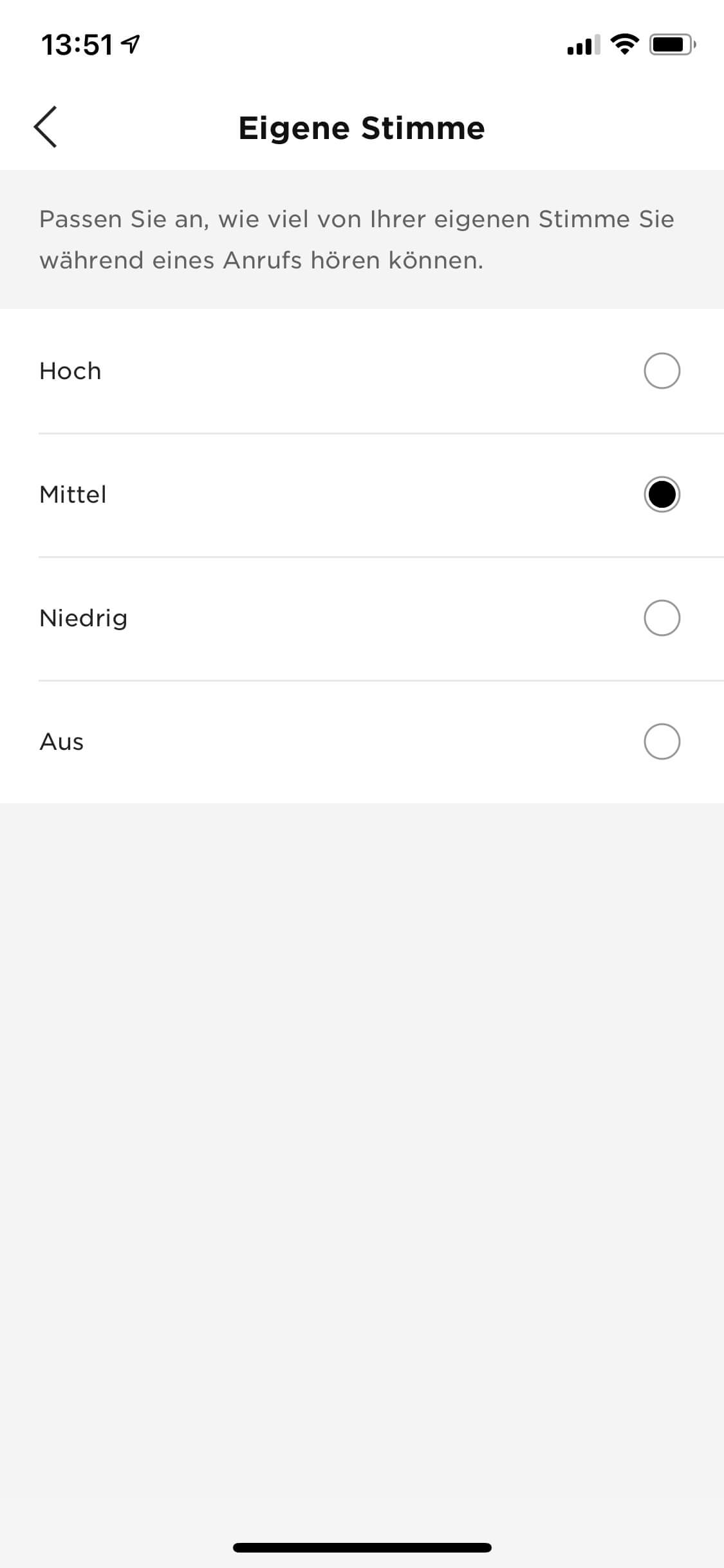 Die Sprachführung ist mehrsprachig und kann via App gewählt werden. Wenn Englisch schon lustig ist, lädt die deutsch gesprochene künstliche Damenstimme schon zum Schmunzeln ein. Man kann – und sollte – sie einfach ausschalten, denn Akku-Ladestand und Informationen darüber, mit welchem Device man gerade verbunden ist, kann man auch über die App einsehen.