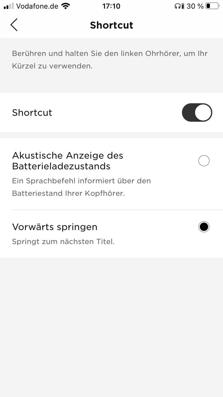 Und will man schnell etwas von seiner Umwelt mitbekommen, tippt man zwei Mal links und schon wird das ANC runtergefahren. Bei 50% erhöht sich dabei das Grundrauschen noch sanft, bei 0% rauscht es schon ordentlich.