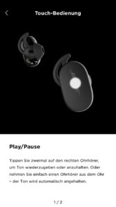 Die Steuerung via Sensorflächen auf den Rückseiten der In-Ears ist etwas begrenzt: Start/Stop/Anrufsteuerung erfolgt rechts bei zweimaligem Tippen. Die gleiche Geste bewirkt links ein Durchsteppen dreier Intensitäts-Level des ANC, die werkseitig auf 100%, 50% sowie 0% voreingestellt sind, sich aber in der App verändern lassen und dort Favoriten genannt werden. Ein Tippen und Halten rechts kann entweder den Batteriestand als Ansage aufrufen oder ein Stück in der Playlist vorwärtsgehen. Rechtsseitig ruft man den digitalen Assistenten herbei.