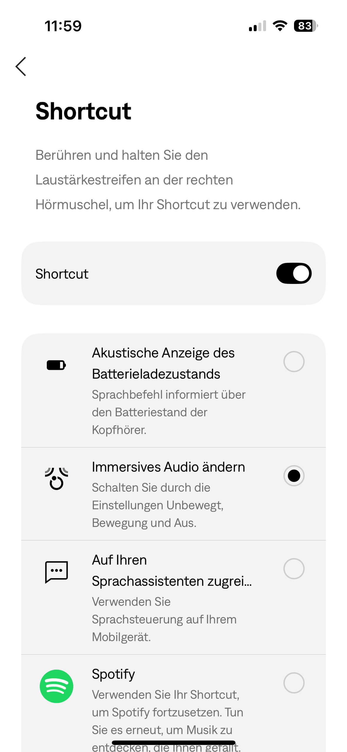 - Immersives Audio ändern: sehr praktisch, wenn man den Bewegungsmodus ein- oder ausschalten will, ohne zum Handy zu greifen