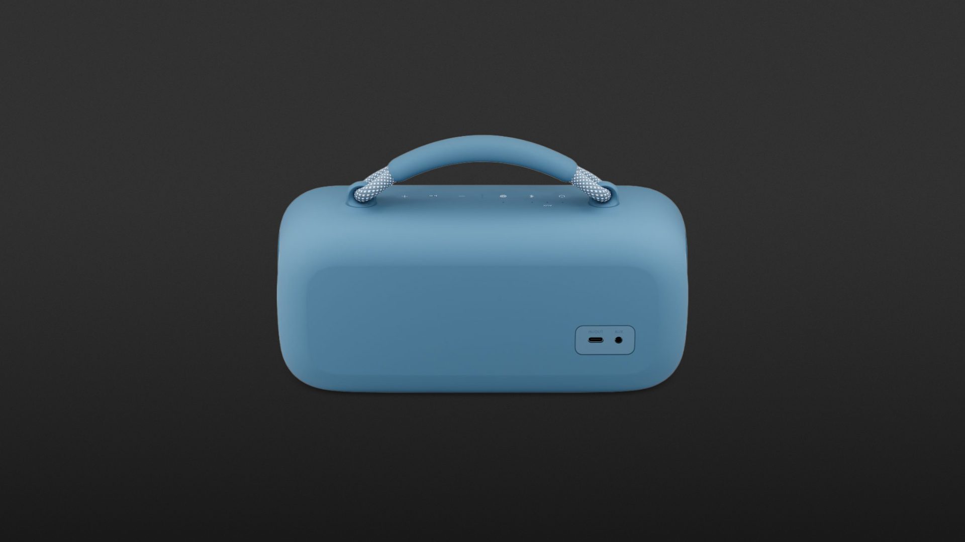 Obenauf, in einer sanften Mulde befinden sich auch die Bedienelemente der Box sowie zwei LED-Lämpchen. Auf der Rückseite sind dann der USB-C-Anschluss, um die Box zu laden, oder ein angeschlossenes Device mit Strom zu versorgen (Powerbank) sowie ein 3,5 mm großer Miniklinken-Aux-Anschluss, um den SoundLink Max analog zu bespielen.