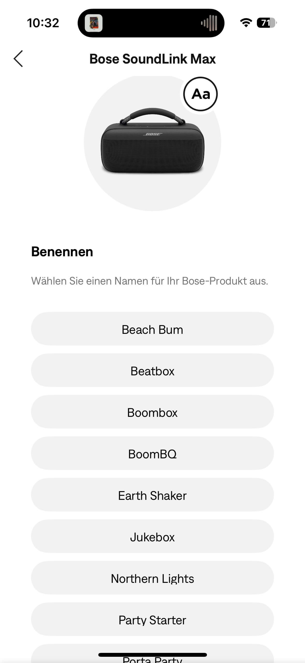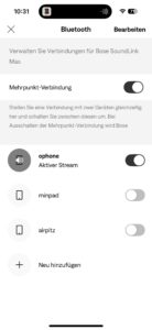 Die Kopplung mit dem Bose SoundLink Max findet problemlos über Bluetooth 5.3 statt. Noch problemloser geht es mit Android dank Google Fast Pair, wobei es dann auch den hochwertigeren aptX Adaptive Codec zur Ausgabe dazu gibt. Bei iOS bleibt die Box bei SBC oder AAC stehen.