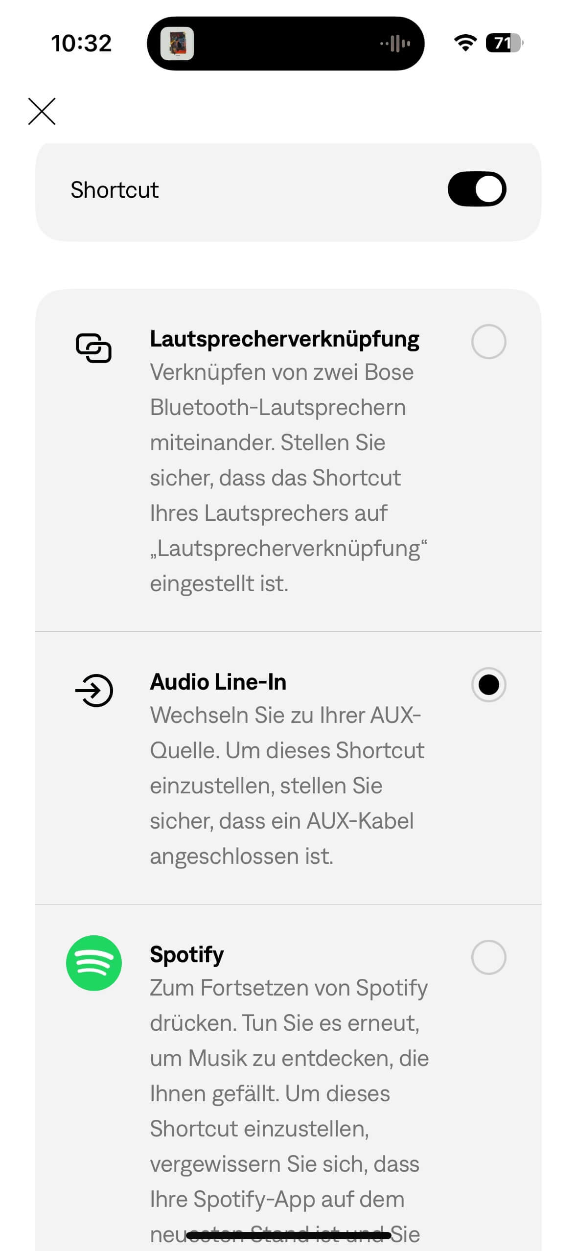 Die Einbindung mehrerer Quellen, wovon zwei gleichzeitig via Bluetooth verkoppelt sein können – Multipoint also – ist einfach und im laufenden Betrieb möglich. Zusätzlich kann in der App die Shortcut-Taste an der Box mit einem von drei Verhalten belegt werden. Zur Auswahl stehen der Spotify-Tab, also der Aufruf der Spotify-App direkt von der Box aus oder die Umschaltung auf den analogen Eingang oder eine Lautsprecherverknüpfung. Denn ist man im Besitz von zwei Bose SoundLink Max können diese einfach zu einem echten Stereopaar verkoppelt werden. Bose nennt seine Technologie dafür SimpleSync. Dank dieser lassen sich auch unterschiedliche Bose-Boxen oder Soundbars verkoppeln, um dann im Partymodus mehr Wumms zu erzeugen oder Surround-Klang zu bewirken. Listen kompatibler Modelle finden sich auf der Herstellerseite im Internet.