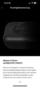 Das alles dank IP67 gut geschützt, um für eine kurze Zeit ins Wasser geworfen zu werden und vor starkem Regen, Staub und Sand gefeit zu sein. Dennoch betont Bose, dass die Box besser abgetrocknet werden sollte, bevor sie nach einem Vollbad in Betrieb genommen wird und vor allem Augenmerk auf den USB-C-Anschluss gerichtet wird, da der ungeschützt im Gehäuse liegt und bei Anschluss es zu einem Kurzschluss kommen könnte, sollte sich dort Wasser angesammelt haben.