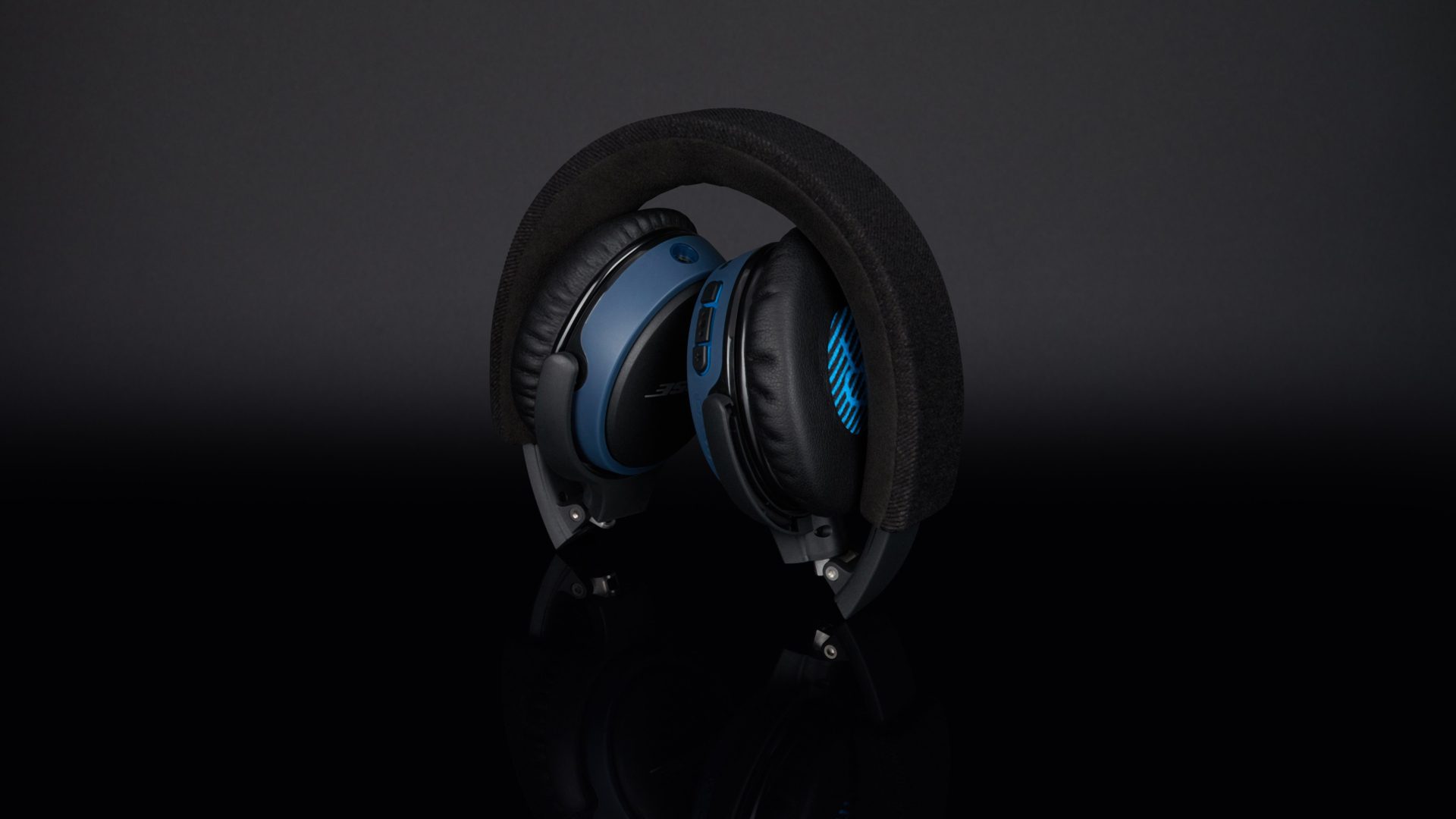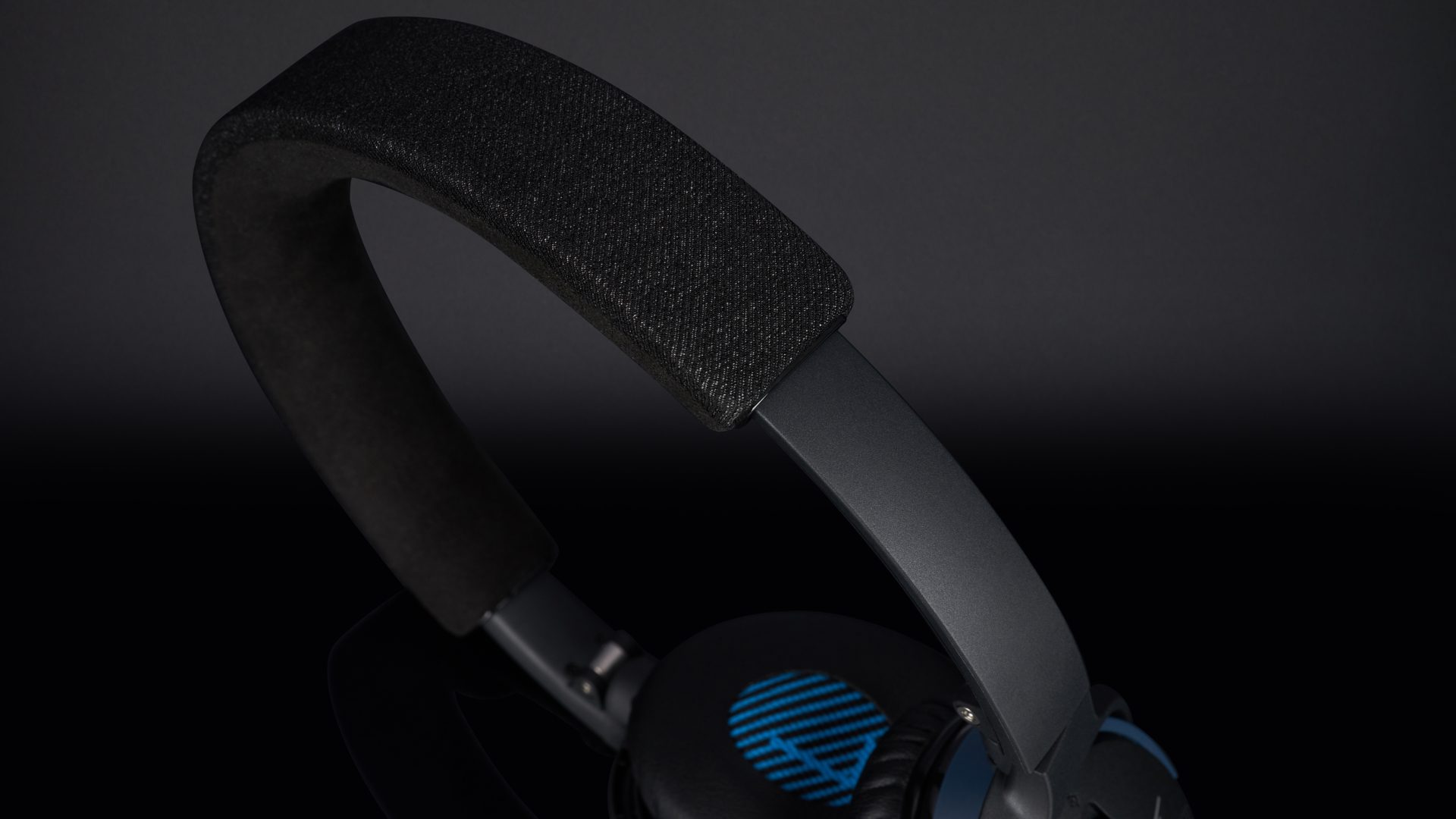 Der kleine Bose fühlt sich direkt beim ersten Kontakt schon nach Qualität an. Hochwertiger Kunststoff trifft auf Metallscharniere und weiche Kunstlederpolster. Das Kopfpolster ist aus einer Art Velours, die Oberseite ist ein grober Stoff, vergleichbar mit Jeans. Wo auch immer zwei Teile aufeinandertreffen, findet man gleichmäßige Spaltmaße ohne Versatz. Nach Gussgraten sucht man vergebens. Kleiner Wehrmutstropfen: Das Bose-Logo auf den Ohrmuscheln ist nur gedruckt.