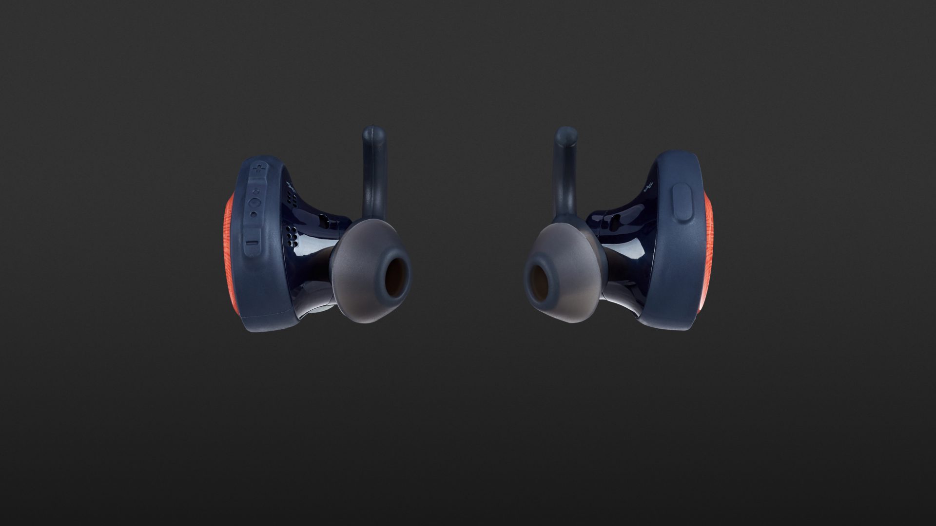 „The Weeknd“ von Starboy feat. Daft Punk brodelt tief und knackig in meinen Ohren und ich würde jetzt gerne etwas Sport machen. Kein Kabel, das stört und dank „Stay Hear+“ Ohreinsätze sitzen die Earbuds sicher und fest, wobei immer noch eine ausreichende Menge Außengeräusche und auch Luft in den Gehörgang gelangen kann – man fühlt sich also nicht völlig abgeschottet und eingeengt, was bei schweißtreibender Tätigkeit durchaus von Vorteil ist. Mit „DNA.“ stemme ich die Doppelhantel doppelt und dreifach gut, so druckvoll treibt mich Kendrick Lamar durch den Parcours und die Laufeinheit geht deutlich flotter mit Katy Perry im Ohr. Es ist der Beat, der mich voranbringt und womit die SoundSport Free sehr gut klarkommen. Und selbst intensivster Work-out lässt die Hörer nicht locker werden. Daher vergebe ich eine hohe Punktzahl bei Sitz, Tragekomfort und Klang! Abzüge in der B-Note gibt es für die Außenwirkung der Ohrhörer, die wie Pilze links und rechts aus meinen Ohren hervorwachsen und dank dem prächtigen Orange unseres Testgeräts keinerlei Anspruch auf Dezenz und Zurückhaltung erheben.