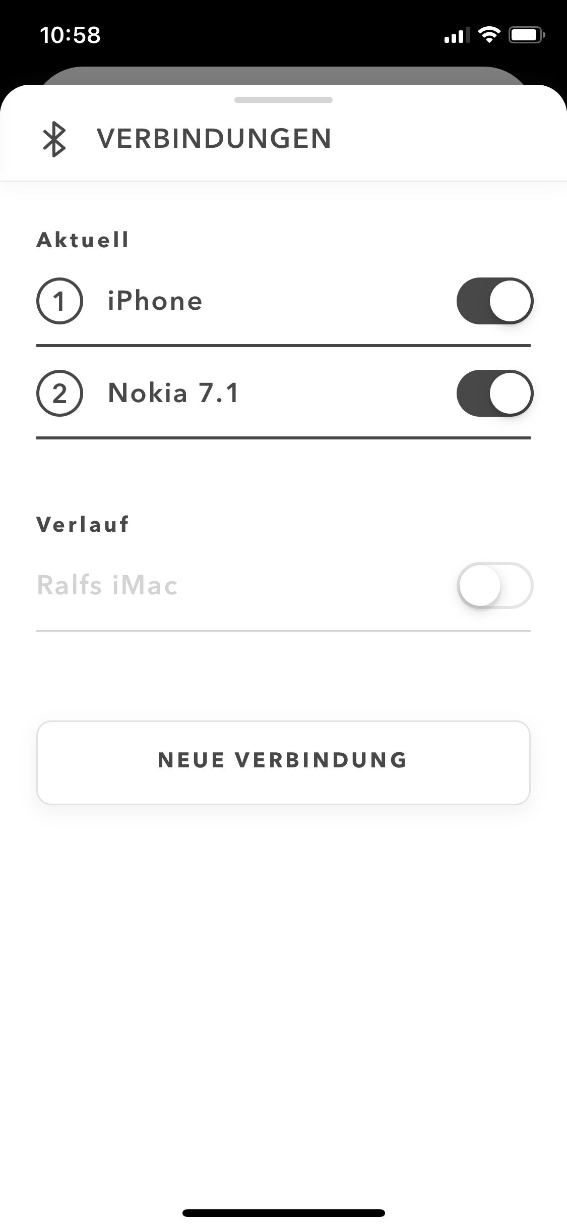 Der im Auslieferungszustand ca. zur Hälfte geladene Akku erlaubt aber auch ohne App-Unterstützung das sofortige Ausprobieren: Das Bluetooth-Koppeln geschah sowohl bei iOS, Android Version 9 und macOS konfliktfrei und binnen weniger Sekunden. Dank 5.0-Standard merkt sich der PX5 bis zu 8 Verbindungen und stellt diese auch ungefragt immer dann her, wenn das Bluetooth-Gegenüber in Reichweite ist.