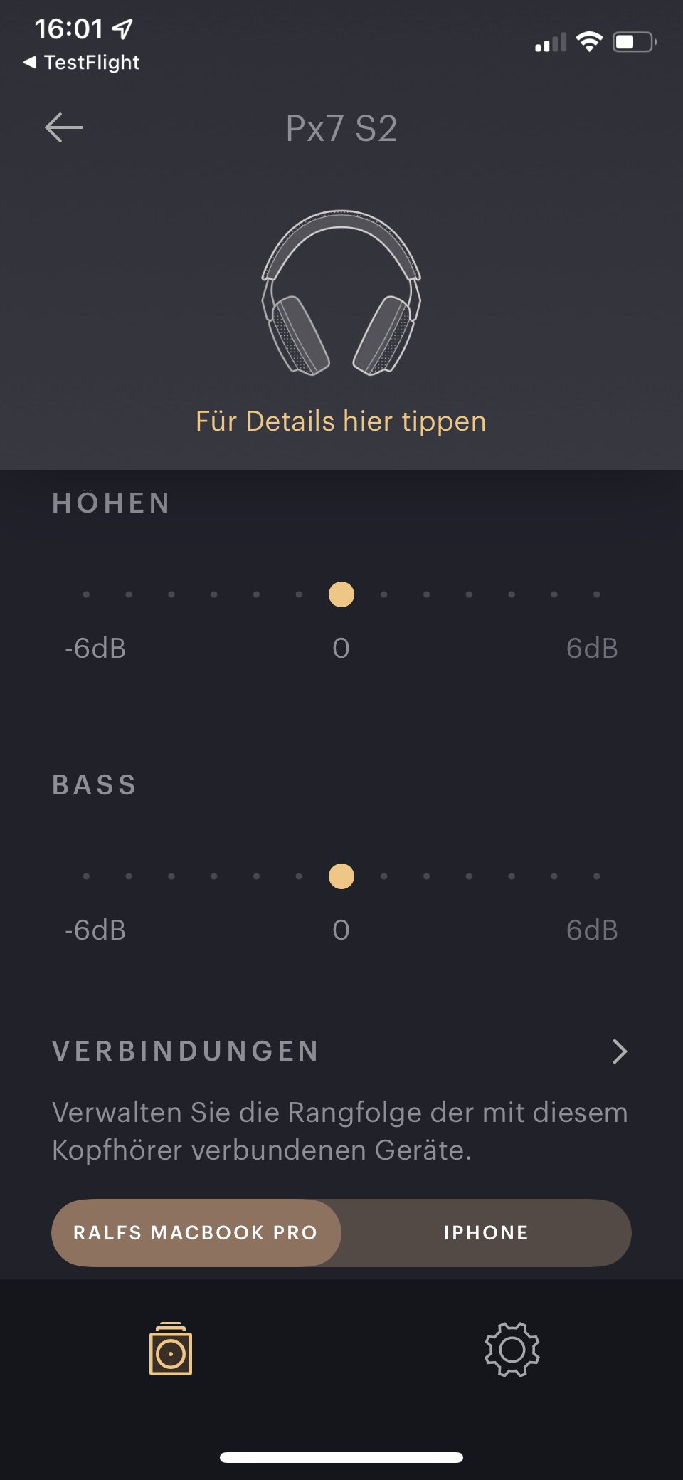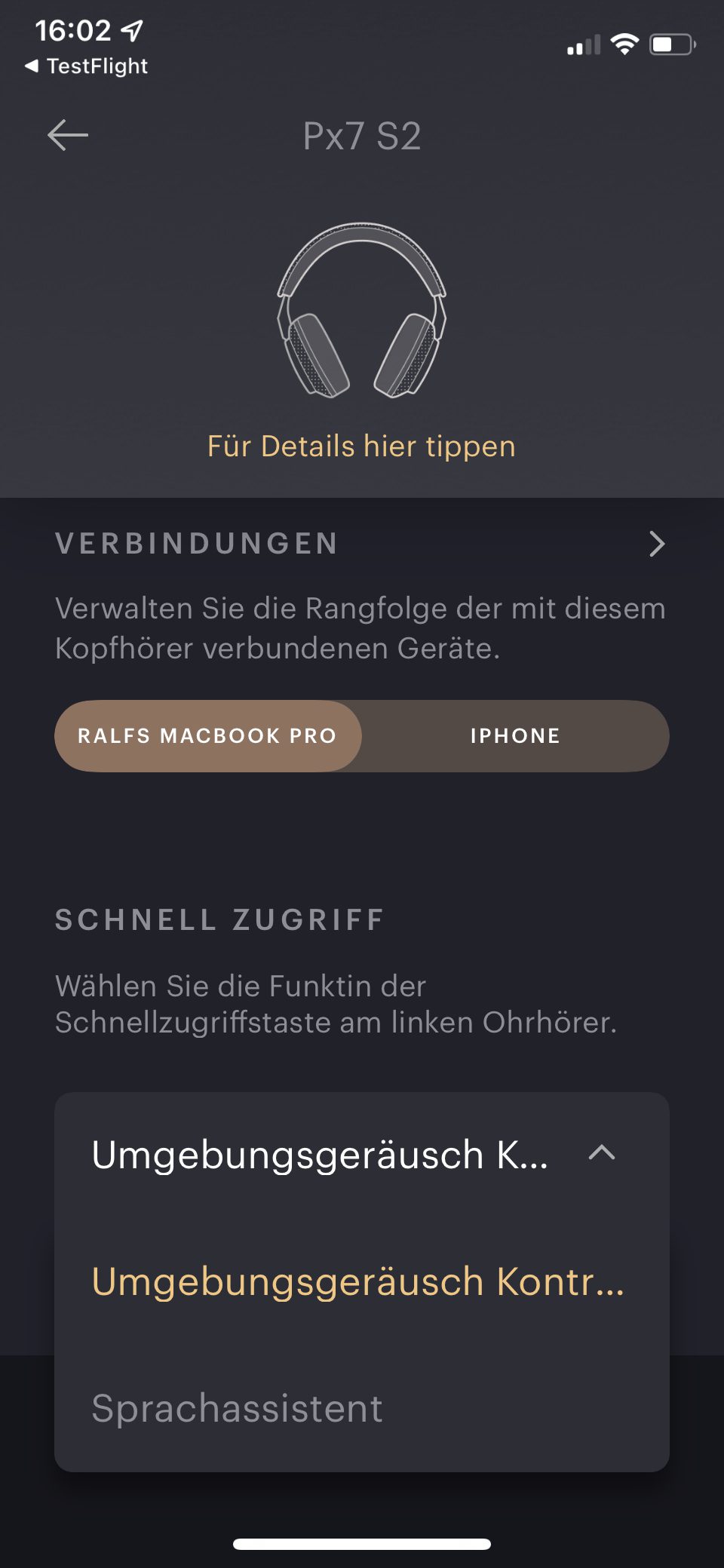 Was meines Erachtens definitiv ein Bug ist, ist die Tatsache, dass die Einstellung zur automatischen Kopplung nicht funktioniert. In der Software hat man die Wahl, ob sich der Kopfhörer mit dem letzten verbundenen Gerät automatische verbinden soll, oder ob er sich mit einem zu definierenden Standardgerät automatischer verbinden soll. Und genau das mit dem Standardgerät funktioniert nicht. Unabhängig davon, wie ich die Einstellung gesetzt habe, verbindet sich der Px7 S2 immer mit dem zuletzt verbundenen Gerät automatisch. Das hat beim Vorgänger übrigens noch hervorragend funktioniert.