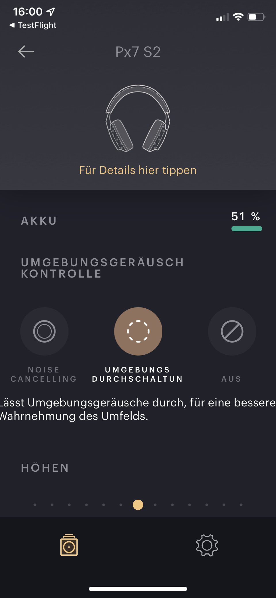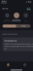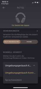 Noise Cancelling und Transparenzmodus des Px7 S2