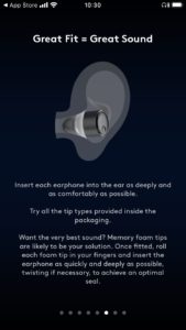 Dem Produkt liegt eine beachtliche Auswahl an Silikon- und Memory-Schaumstoff-Ohrstöpseln bei, so dass man eine gute Passgenauigkeit und Isolierung von Außengeräuschen erreichen kann. Die Passform ist grundsätzlich gut. Da die Bauform identisch zum Vorgänger ausfällt, ergab sich bei mir bei längeren Hörsitzungen ein etwas unangenehmes Druckgefühl, was vermutlich an meiner spezifischen Ohrform liegt. Der Sitz selbst ist sicher und ein Sporteinsatz durchaus möglich, wobei die Stöpsel nicht vor einem Herausfallen geschützt sind.