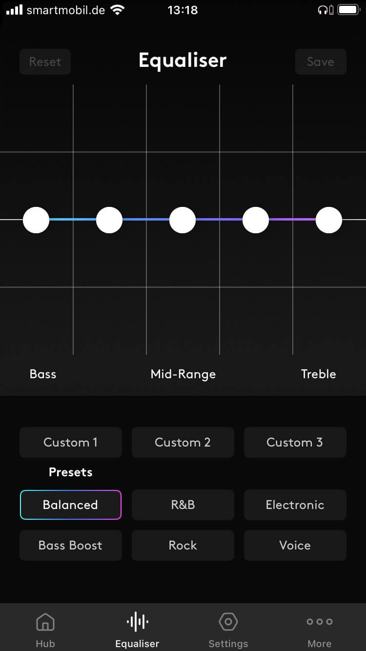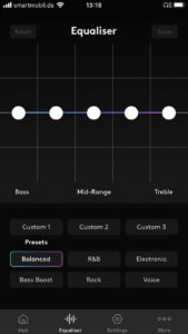 Die App bietet zudem einen speicherbaren fünfbandigen Equalizer für die persönliche Klangabstimmung. Noise Cancelling wird hingegen nicht geboten, wohl aber eine gute passive Nebengeräuschunterdrückung. In der attraktiven Preisklasse von circa 140 Euro ist das kein Problem und zeigt gleichzeitig eine mögliche Lücke für ein künftiges größeres Modell.