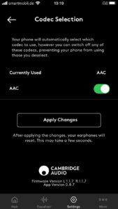 - BT-Codecs: aptX, AAC, SBC