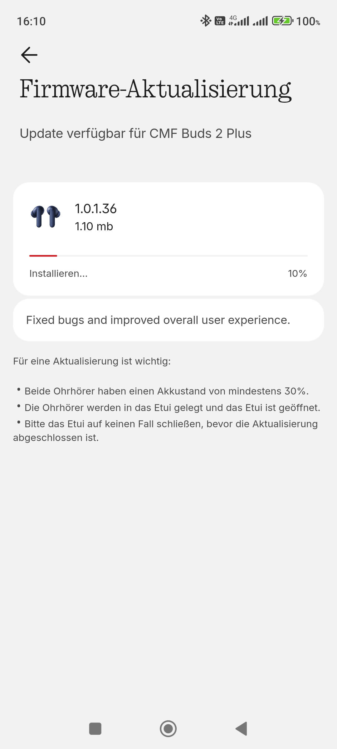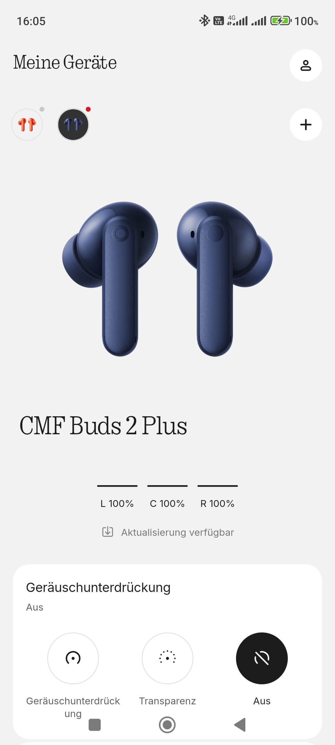 Die CMF by Nothing Buds 2 Plus werden mitsamt Ladecase und drei Paar Ohrpassstücken aus Silikon in unterschiedlichen Größen geliefert. Sie sorgen für eine individuelle Größenanpassung und damit für sicheren Sitz und optimalen Klang. Außerdem liegt ein kleines Benutzerhandbuch bei, das zugleich als Sicherheitsdatenblatt fungiert. Ein USB-C-Ladekabel gehört nicht dazu. Zusätzlich kann kostenlos die App „Nothing X“ heruntergeladen werden. Sie ermöglicht es, Befehle für die Touch-Steuerung der In-Ears festzulegen und etliche individuelle Features aufzurufen.