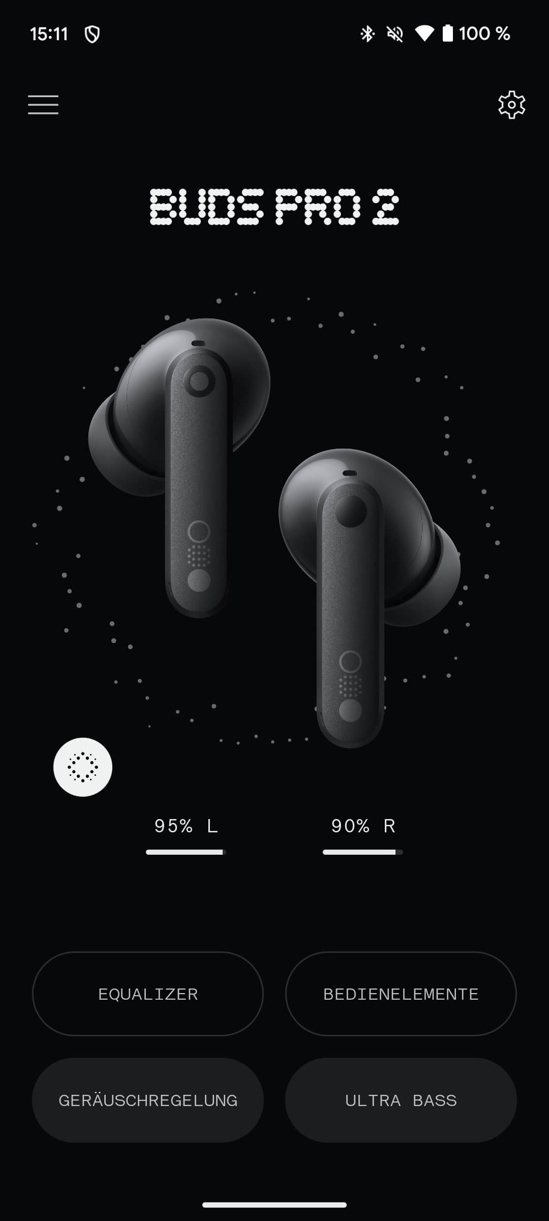 Die Nothing-X-App (iOS, Android) ermöglicht diverse Anpassungen und Steuerungsmöglichkeiten. Ihr könnt Equalizer-Einstellungen vornehmen, Firmware-Updates automatisch durchführen und die Funktionen des Drehknopfes am Lade-Case personalisieren. Hier regelt ihr auch den Ultra Bass sowie das ANC, das zwischen vier Stufen (adaptiv, niedrig, mittel, hoch) umgeschaltet werden kann. Zudem de-/aktiviert ihr hier auch den Transparenzmodus, der nicht regelbar ist. Auch könnt ihr auf „Aus“ stellen und somit die In-Ears ohne aktive Geräuschregelung betreiben.