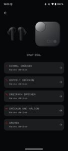 Wer die Standardbelegung ändern möchte, kann hier den linken und rechten Hörer mit unterschiedlichen Aktionen belegen. Dabei werden keine Einfach-Taps unterstützt, sondern Doppel- und Dreifach-Taps sowie Tippen und Halten und zweimal Tippen und Halten. Wobei die letzten beiden Aktionen nur bestimmte Steuerbefehle erlauben. Ein Ändern der Lautstärke ist zum Beispiel nur mit letzterem Befehl möglich. Auch richtet ihr hier das bei Auslieferungszustand nicht belegte Smart Dial des Lade-Cases ein.