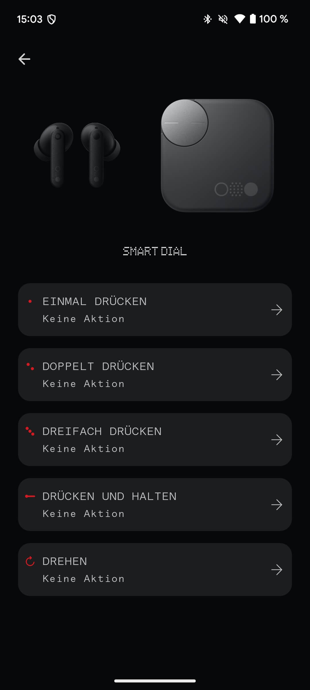 Das Ladeetui der CMF by Nothing Buds Pro 2 verfügt über ein interessantes Feature: Das Smart Dial ist ein Drehknopf, der eine Reihe von Funktionen bietet. Mit diesem könnt die Lautstärke anpassen, Anrufe verwalten, die ANC-Modi wechseln, den Transparenzmodus aktivieren, die Medienwiedergabe steuern oder ChatGPT starten. Letzteres setzt ein Smartphone von CMF oder Nothing voraus, welches ich nicht besitze. Da die Nothing Ear allerdings über das selbe Feature verfügen, verweise ich hiermit auf den Test meiner Kollegin.