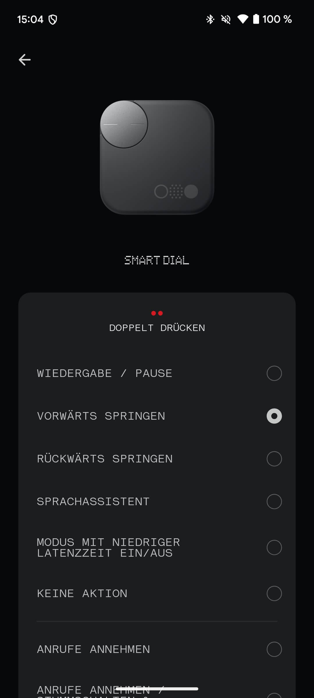 In der Praxis erweist sich dieser kleine Drehknopf als äußerst praktisch: Mit dem Etui in der Jackentasche steuert ihr quasi blind die von euch vorher per App festgelegten Funktionen. Während unseres Tests hätten wir nicht gedacht, wie angenehm es ist, einen haptischen Regler immer griffbereit zu haben. Im Homeoffice liegt der Lautstärkeregler daher neben uns, was den Workflow jedenfalls weitaus weniger stört, als ans Handy zu greifen. Selbst in der (nicht zu engen) Hosentasche löste das Smart Dial während unserer stundenlangen Gassigänge nicht versehentlich aus.