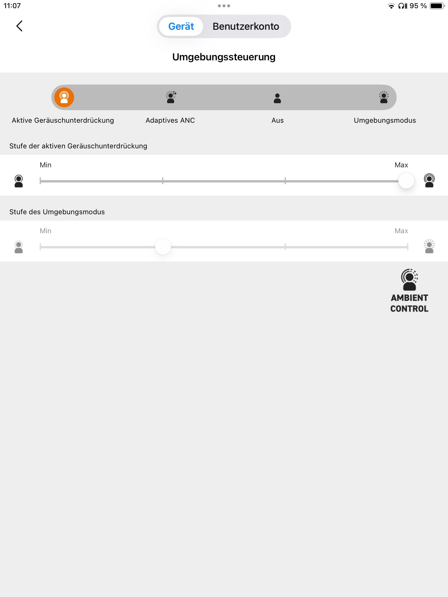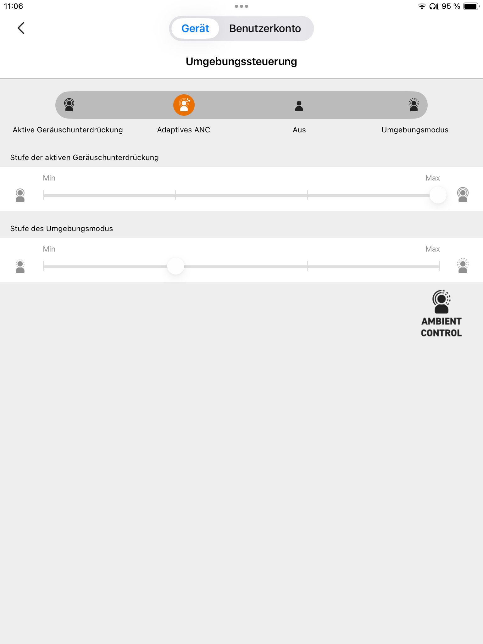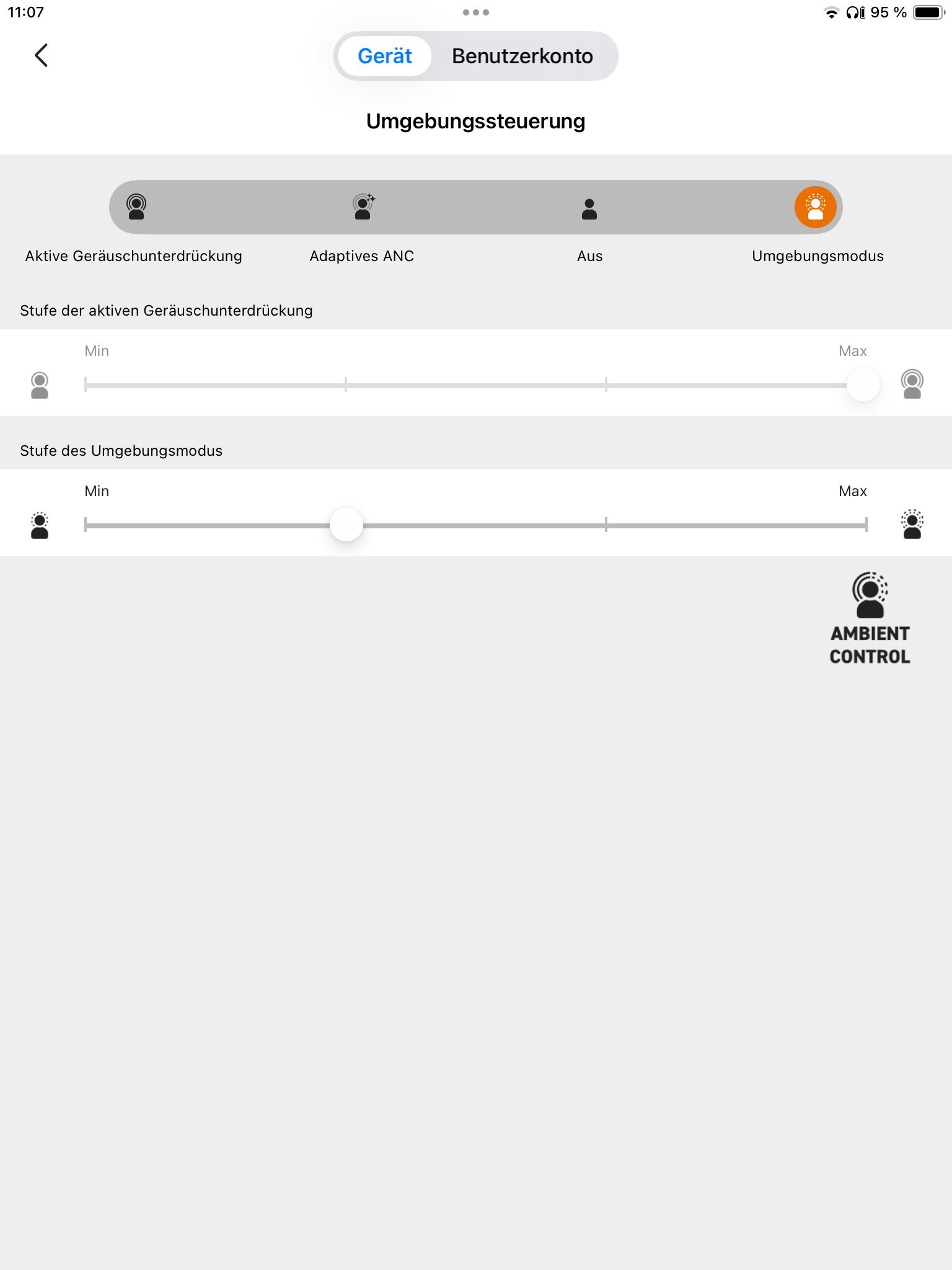 Geräuschunterdrückung (ANC) und Umgebungsmodus