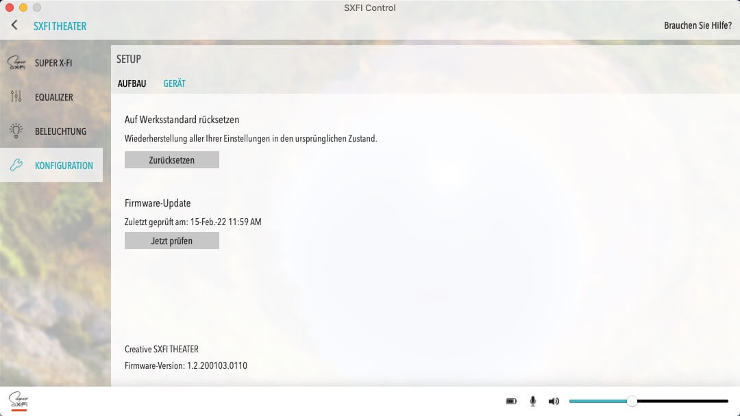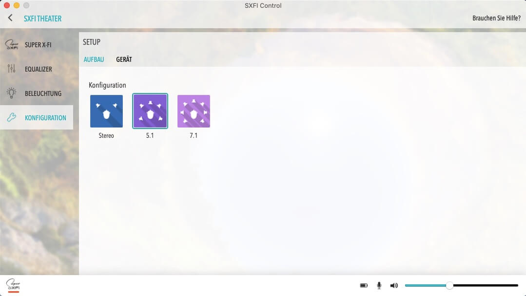 Am PC oder Mac kann eine Anpassung der RGB-Beleuchtung und der Audio-Einstellungen über die SXFI Control App erfolgen. Die Auswahl an vorkonfigurierten EQ-Settings ist mit „Kino“, „Klassik“, „Spiel“ und „Pop“ zwar ausbaufähig, jedoch bietet der grafische EQ die Möglichkeit eigene Einstellungen als Presets zu speichern.