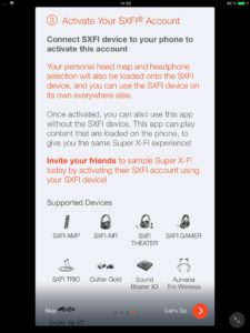 Über die kostenlose SXFI App für Android- und iOS-Geräte besteht die Option einer Aktualisierung der Hörer durch Firmware-Updates. Zudem kann eine Klanganpassung mithilfe einer kleinen Preset-Auswahl oder eigenen EQ-Einstellungen erfolgen. Auch eine Personalisierung der sogenannten Audio-Holografie ist möglich, indem ein eigenes Profil erstellt wird. Fragwürdig erscheint allerdings der Umgang mit den sensiblen, biometrischen Daten, da die Nutzung eines Hörprofils voraussetzt, dass mithilfe einer Anleitung Fotos vom Gesicht und beiden Ohren gemacht werden, die dann auf irgendeinem Server gespeichert werden. Wer kein Profil erstellen möchte, hat jedoch trotzdem die Option den Klangeffekt in der Standardvariante zu nutzen.