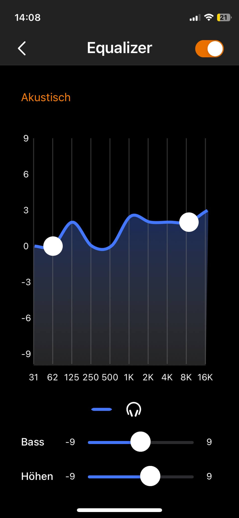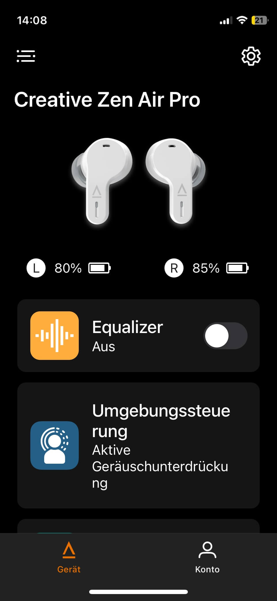 Die App ist ein Allrounder, der sich mit verschiedenen Modellen von Creative verbinden lässt. Der Funktionsumfang ist überschaubar: Neben besagtem Equalizer und der Option, die Funktionen für die Touch-Steuerung neu zuzuordnen, erlaubt sie die Aktivierung bzw. Einrichtung der Umgebungssteuerung.
