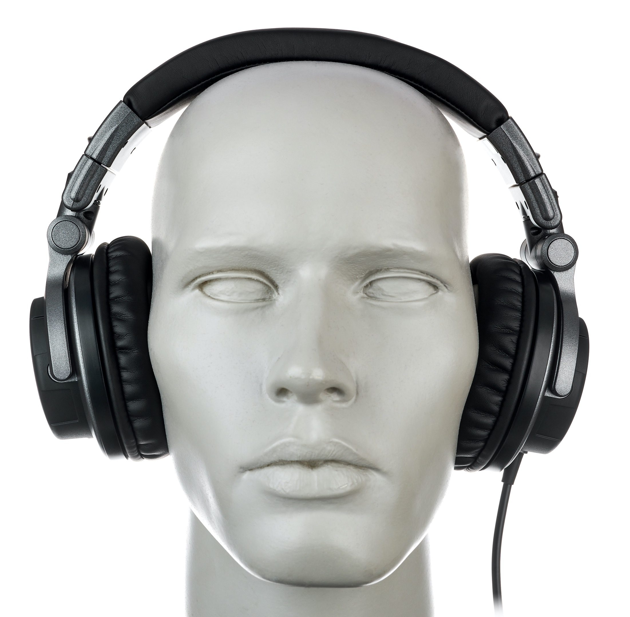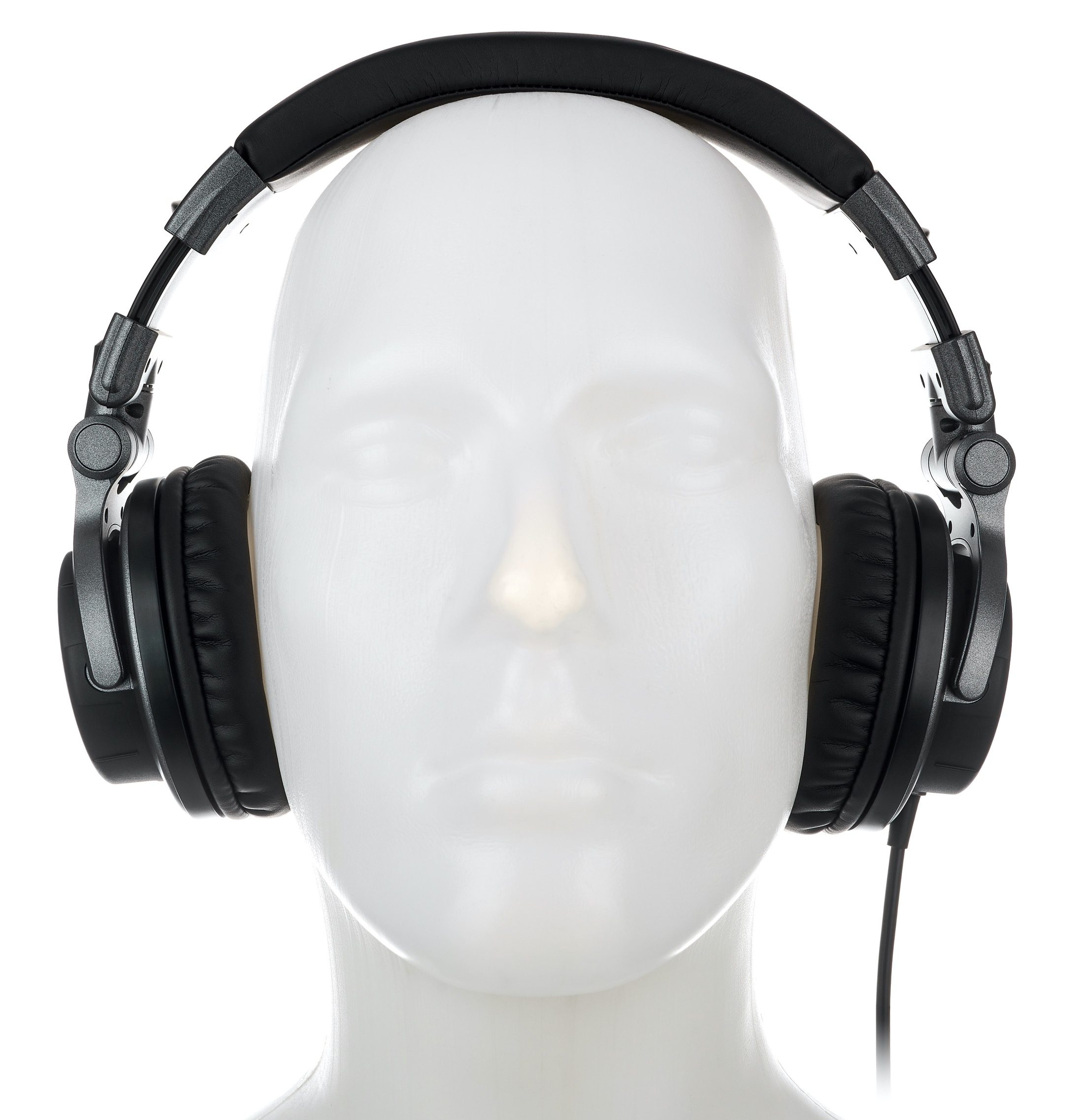 Auf dem Datenblatt brilliert der geschlossene Kopfhörer mit ausgezeichneten Werten. Seine 53 Millimeter großen dynamischen Treiber übertragen Frequenzen zwischen impulsartigen 5 Hertz und nicht mehr hörbaren 33 Kilohertz. Seine Impedanz von gemittelten 65,25 Ohm und die Empfindlichkeit von 100,02 dB/mW überzeugen ebenfalls, wie auch seine 3500-mW-Nennbelastung, mit denen er förmlich für den lautstarken DJ-Alltag geschmiedet ist.