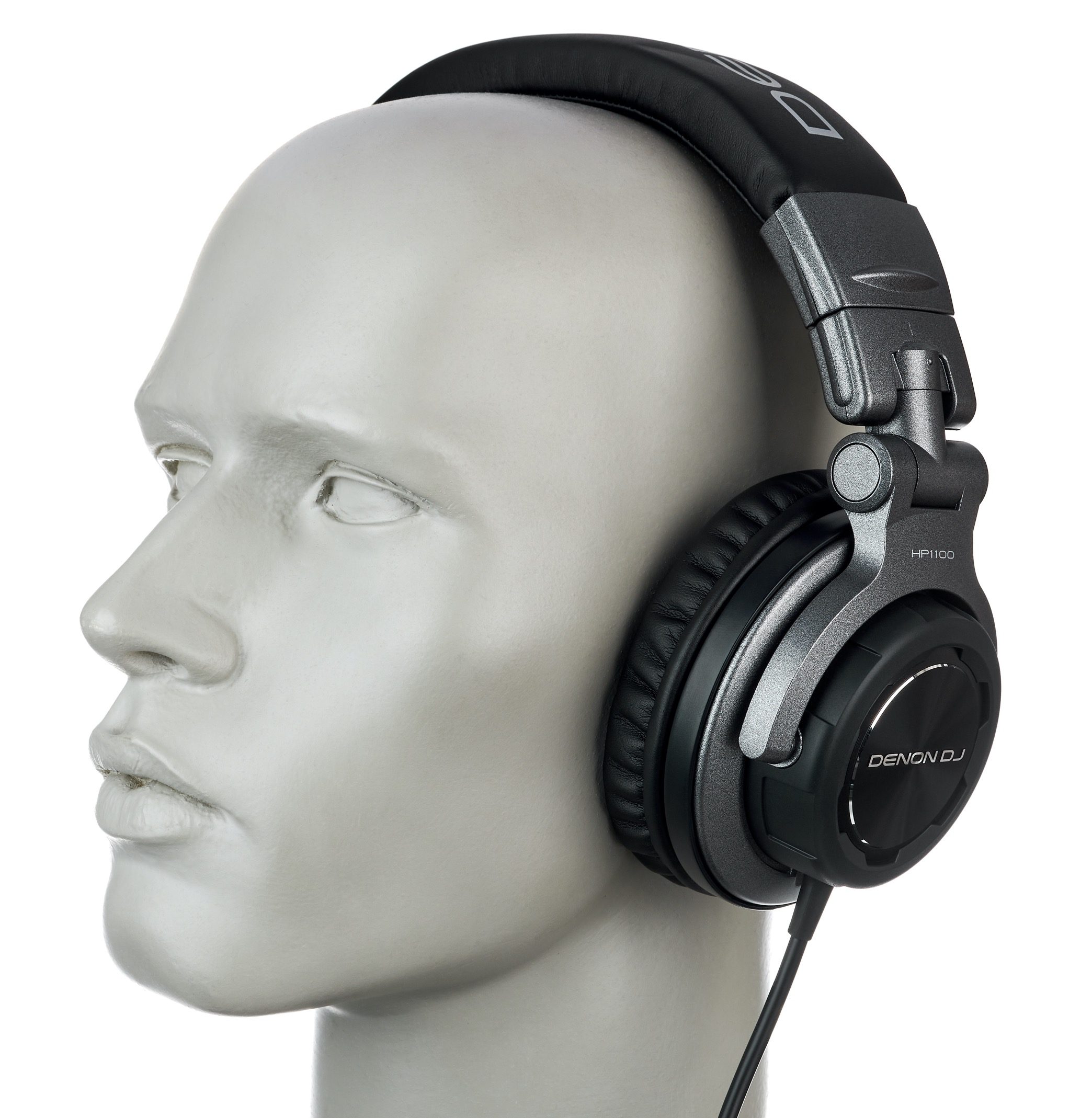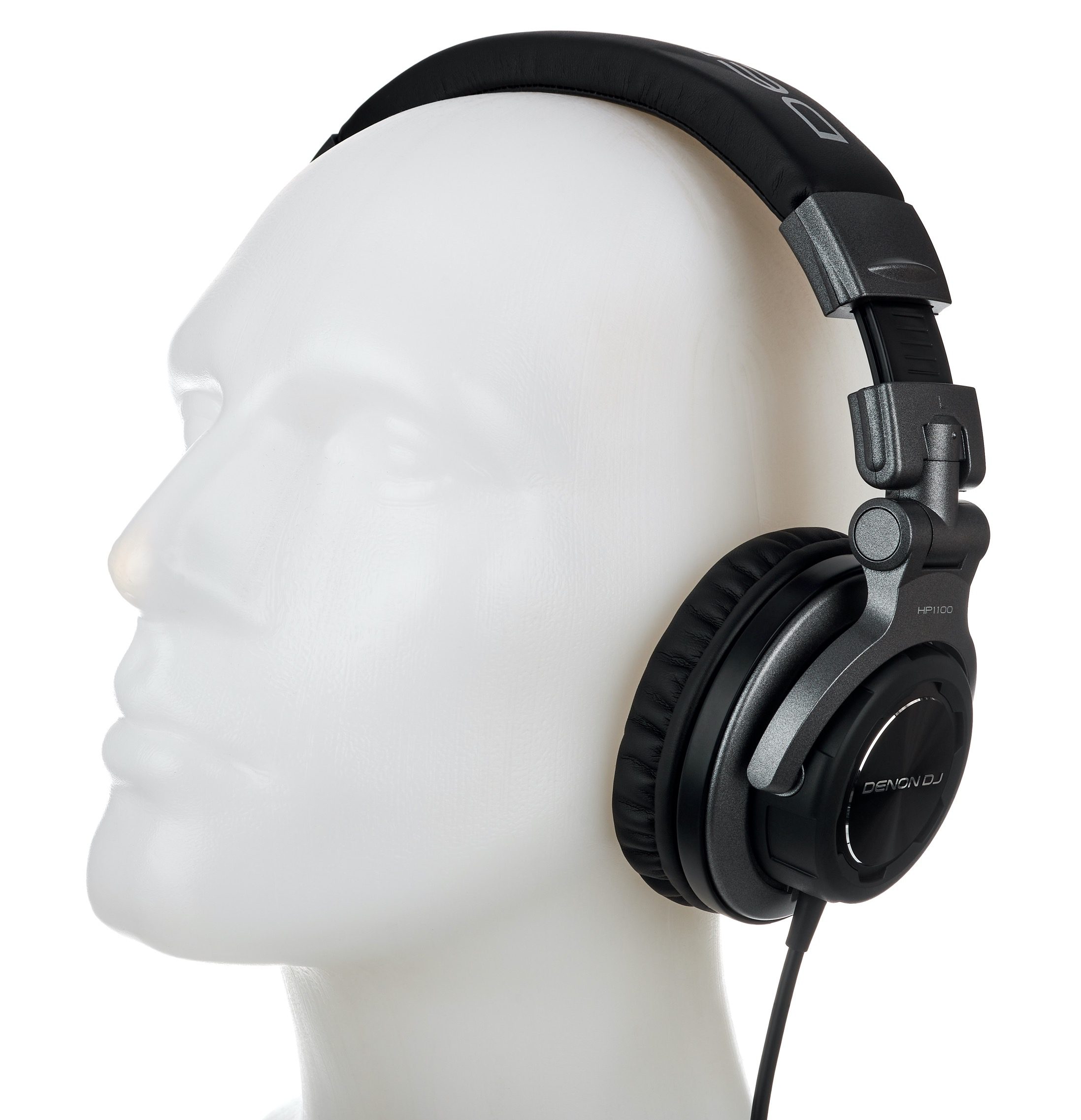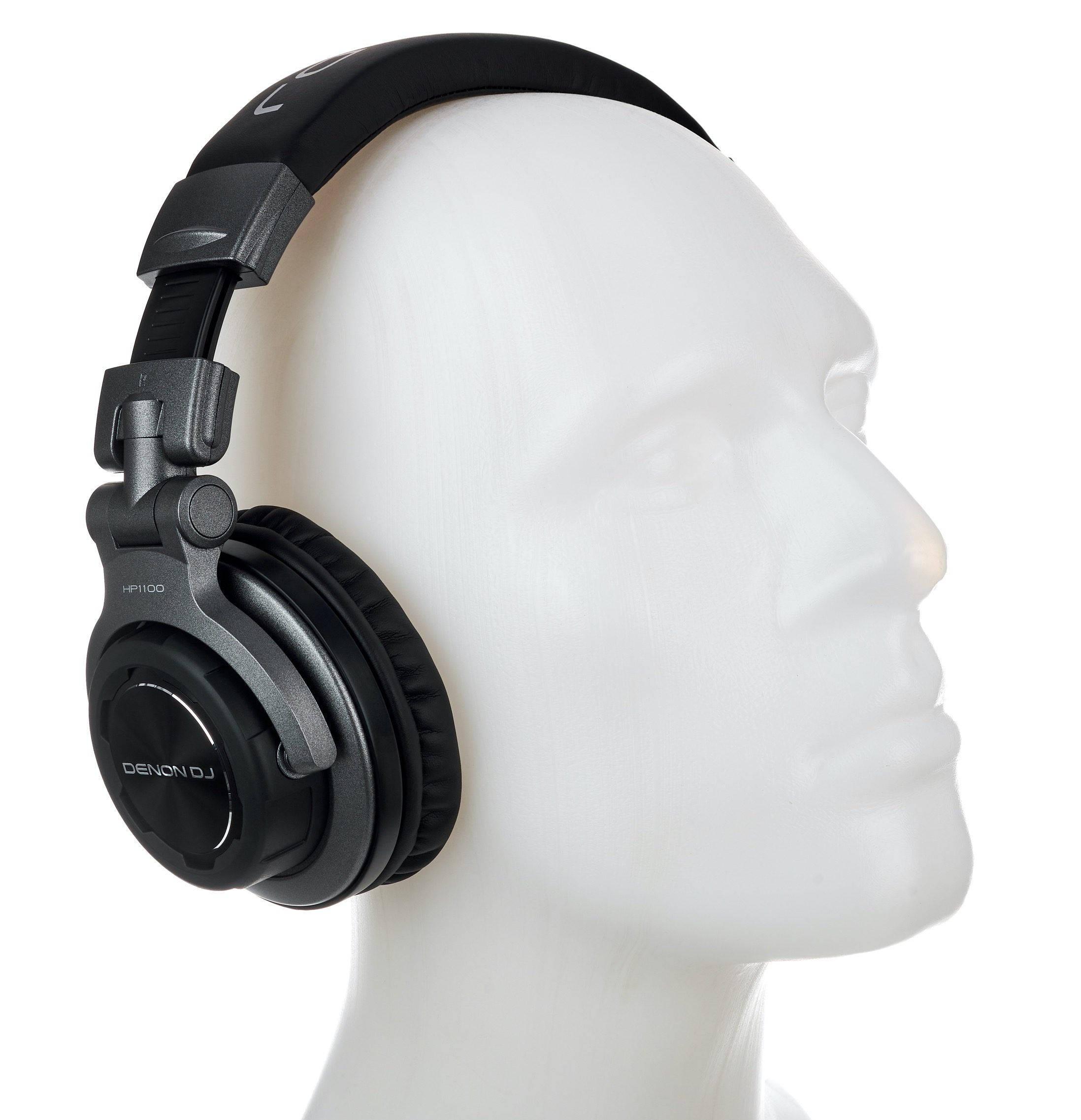 Der geschlossene, ohrumschließende DJ-Kopfhörer Denon DJ HP1100 spricht optisch, von seiner Ausstattung her und dem Tragekomfort an. Die verbauten 53 Millimeter großen dynamischen Treiber übertragen einen sehr breiten Frequenzgang, der sich vor allem mit einem gut dosierten Bass samt kräftigem Punch definiert – von Vorteil beim DJ-Monitoring. Auch seine Mitten und Höhen ergänzen dieses recht homogene, dennoch nicht lineare Klangbild, das sich dank der sehr guten Abschirmung und des lautstarken Pegels unter stärkerer Geräuschkulisse in der DJ-Kanzel souverän durchsetzt. Trotz seiner wuchtigen Größe und Masse sitzt der Kopfhörer solide, ohne spürbar zu nerven. Leider ist das robuste Spiralkabel nicht auswechselbar. Wer damit leben kann, der wird nicht enttäuscht.