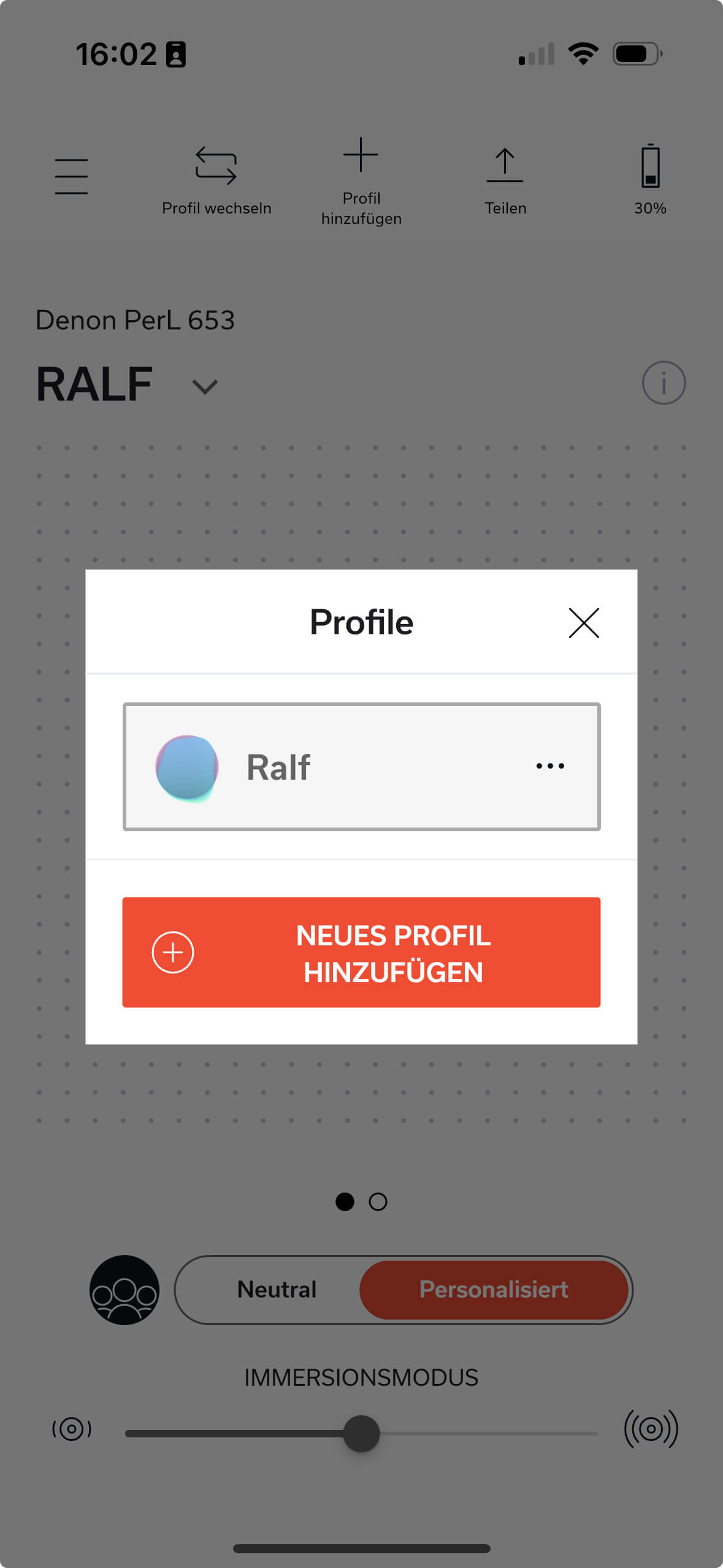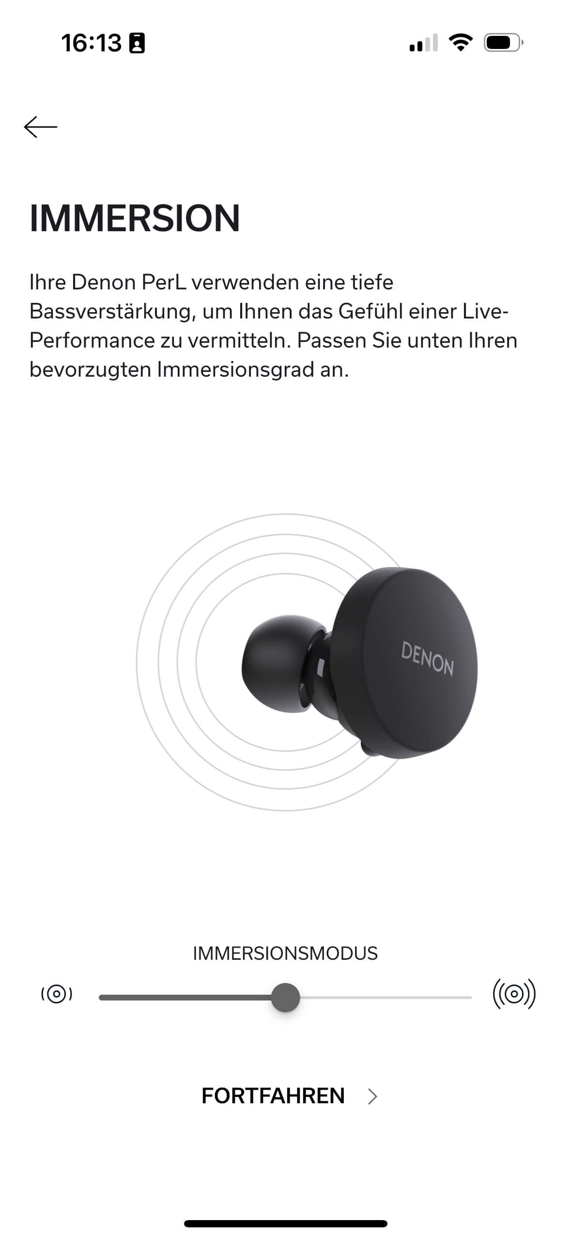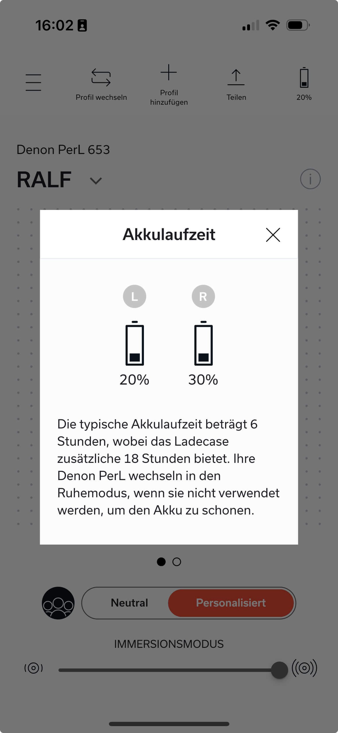 Das Ergebnis ist nicht nur verblüffend, sondern verblüffend gut. Man kann zum Spaß in der App zwischen personalisiertem und neutralem Profil schalten und wird feststellen, dass alles, was in der neutralen Position schon ganz gut in der personalisierten deutlich besser klingt. Hinzu kommt ein regelbarer Immersionsmodus, der den Bass auf eine breitere Basis stellt, und vor allem bei elektronischer Musik Hörspaß bringt.