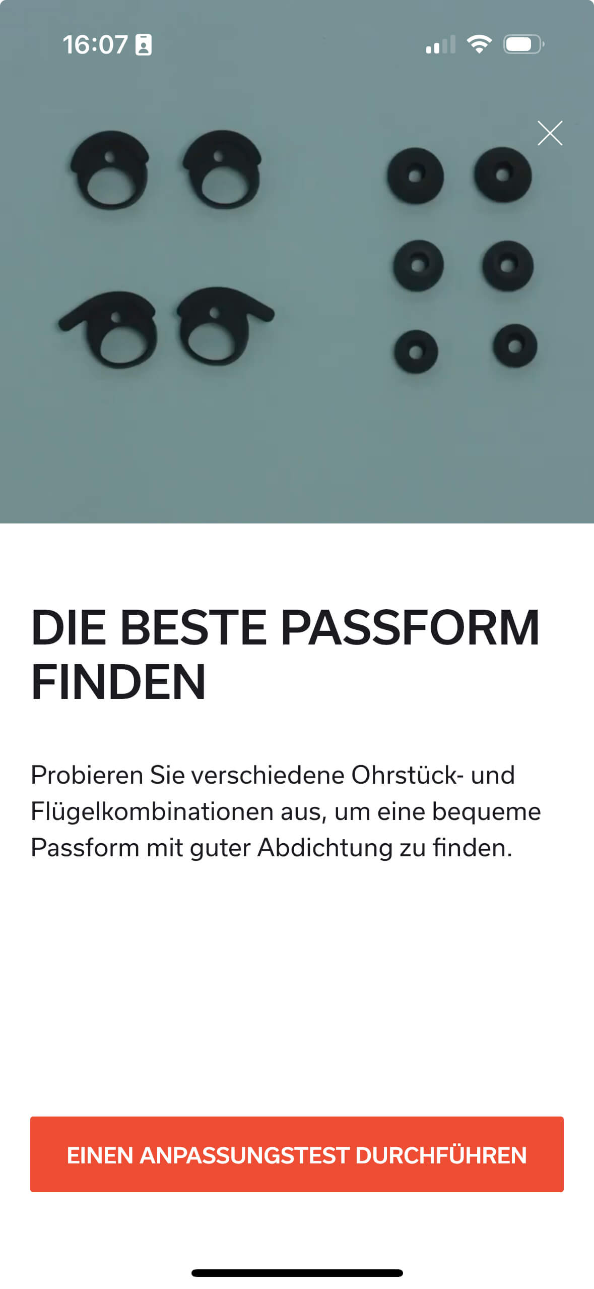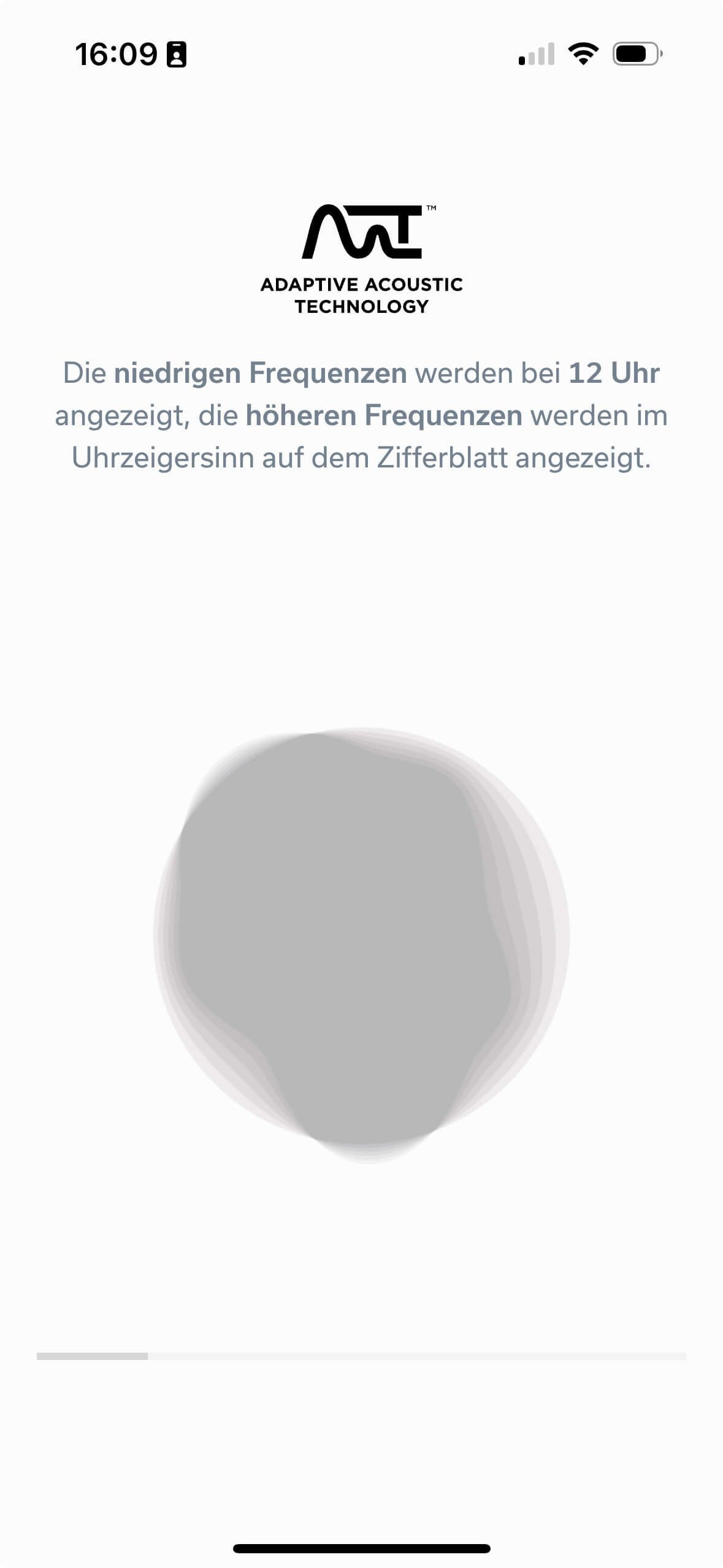 Als Erstes gibt es eine kurze Anprobe, ob die Passstücke auch gut sitzen. Ein kurzer Frequenz-Sweep quittiert, wenn die Hörer dicht genug sitzen und man sich dem eigentlichen Einmessvorgang widmen kann.
