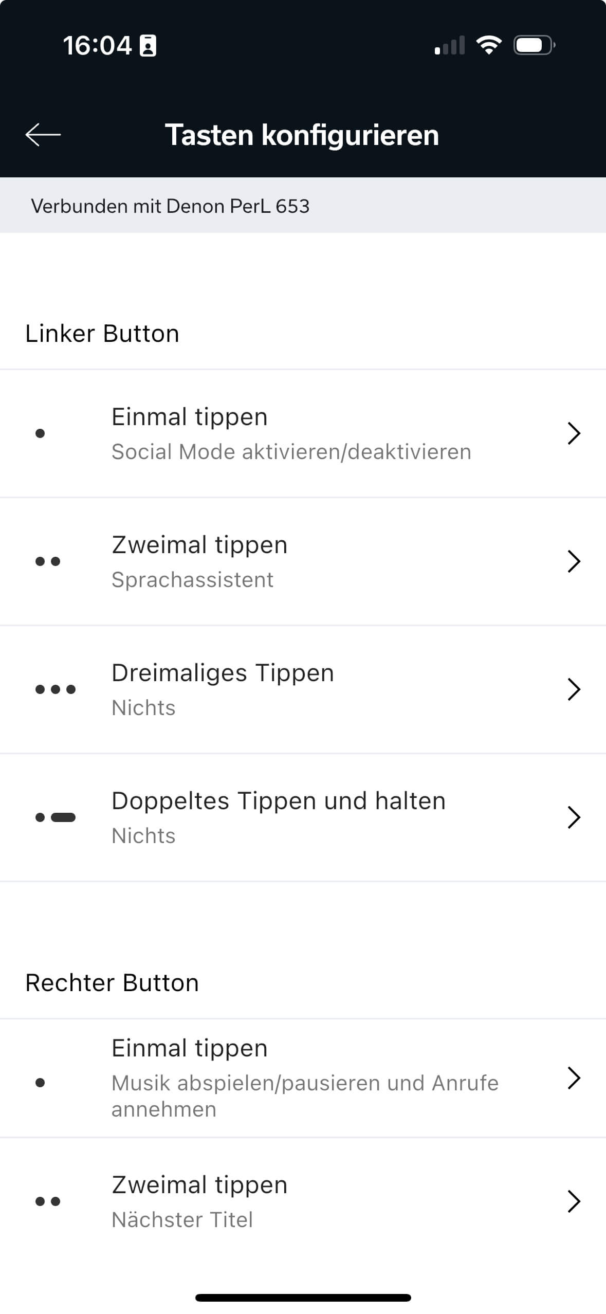 Die Steuerung via Tastbefehl auf beiden Seiten ist ebenfalls gut gelöst, zumal Denon in der App auch einige Angebote macht, die Steuerung nach Gusto zu programmieren. Selbst die Änderung der Lautstärke via längerem Tip und folgendem Fingerauflegen war erlernbar und wurde im Laufe der Zeit zur Routine.