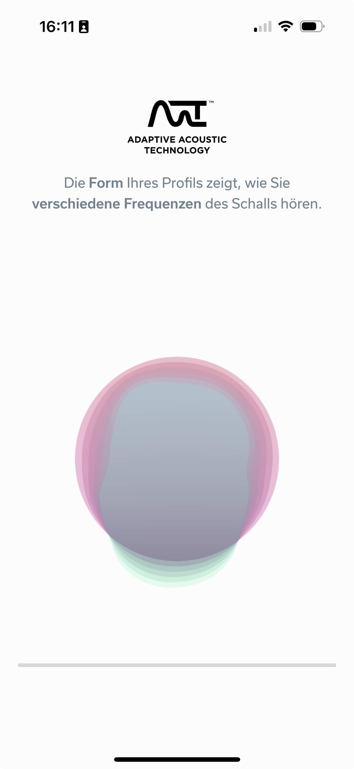 Wie schon beim Test der PerL Pro beschrieben, ist der Abgleich mit dem eigenen Hörvermögen einfach und effektiv gehalten. Man wird dazu aufgefordert, in einer ruhigen Umgebung und in einer ruhenden Position den Vorgang zu erledigen. Nach wenigen Minuten, in denen verschiedene Messtöne zu hören sind, meldet die App Vollzug, und zwei Kreise mit ein paar Beulen zeigen ein persönliches Hörprofil, wobei drei verschiedene Profile abgelegt werden können.