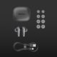 Die berührungsempfindlichen Oberflächen der EarFun Air Pro 3 sind über die App konfigurierbar und ermöglichen ab Werk eine Lautstärkeregelung, das Vor- und Zurückspringen bei der Titelauswahl, eine Wiedergabesteuerung und das Abwickeln von Telefonaten. Darüber hinaus kann der Sprachassistent aufgerufen werden und ein Umschalten zwischen ANC-, Transparenz- und Grundmodus erfolgen. Nachrüstbar ist zudem das (De-)Aktivieren des Gaming-Modus. Nicht vorgesehen ist hingegen das Ein- und Ausschalten der Hörer über die Touch-Oberflächen, weshalb das Case stets benötigt wird. Unterstützt wird aber eine einseitige Nutzung im Single-Betrieb.