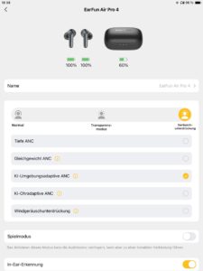 Akkulaufzeit – so lange halten die EarFun Air Pro 4 durch