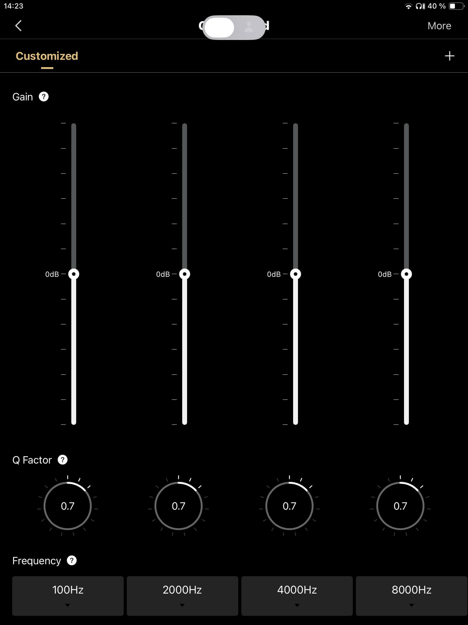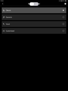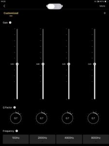 Zur Klanganpassung stellt die App-Anbindung (Android und iOS) der Edifier NeoBuds Plus mit „Classic“, was dem Grundklang entspricht, „Dynamic“ und „Vocal“ drei vorkonfigurierte Optionen zur Verfügung. Durch die Auswahl von „Customized“ lässt sich darüber hinaus ein 4-Band-EQ für eigene Einstellungen aufrufen, die als Presets abgespeichert werden können. Eine integrierte Share-Funktion ermöglicht zudem den Austausch.