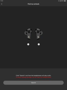 Über die App lässt sich zudem zwischen Standardbetrieb, Gaming-Modus und Spatial Audio umschalten, während zur Klangregelung mit „Classic“, was dem Grundklang entspricht, und „Dynamic“ zwei unterschiedliche Abstimmungen zur Auswahl stehen. Eigene Einstellungen können an einem 4-Band-EQ vorgenommen werden, die als Presets speicherbar sind und mit Freunden geteilt werden können. Weitere App-Funktionen stellen ein Timer und Firmware-Aktualisierungen dar. Wer möchte, hat auch die Möglichkeit, die Farbe der Case-LED anzupassen, welche in Weiß, Gelb, Orange, Rot, Grün, Türkis, Blau und Pink leuchten kann. Abschließend ist noch eine Suchfunktion nutzbar, die per Piepton beim Auffinden der Hörer behilflich sein soll.