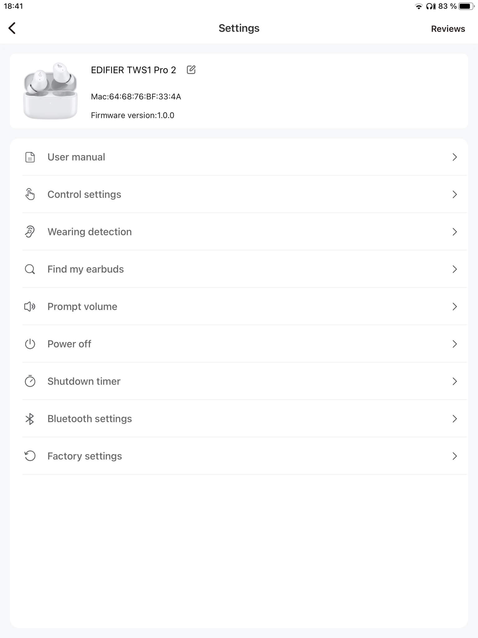 Zur Klangregelung stehen zudem mit „Classic“, was der Grundabstimmung entspricht, „Pop“, „Classical“ und „Rock“ insgesamt vier Modi zur Auswahl. Einen EQ für eigene Einstellungen wie bei den Edifier W240TN bietet das Modell hingegen nicht. Darüber hinaus lässt sich über die App die Trageerkennung der In-Ears und der latenzreduzierte Gaming-Modus ein- oder ausschalten. Dieser verbessert bei Filmen oder Handy-Spielen die Synchronität von Bild und Ton, da die Hörer den Bluetooth-Standard SBC nutzen und keine hochwertigen Audiocodecs unterstützen. Ergänzend kann noch ein Timer konfiguriert und die Lautstärke eingestellt werden, während eine Suchfunktion per Piepton beim Auffinden behilflich sein soll. Firmware-Aktualisierungen sind über die App ebenfalls durchführbar.