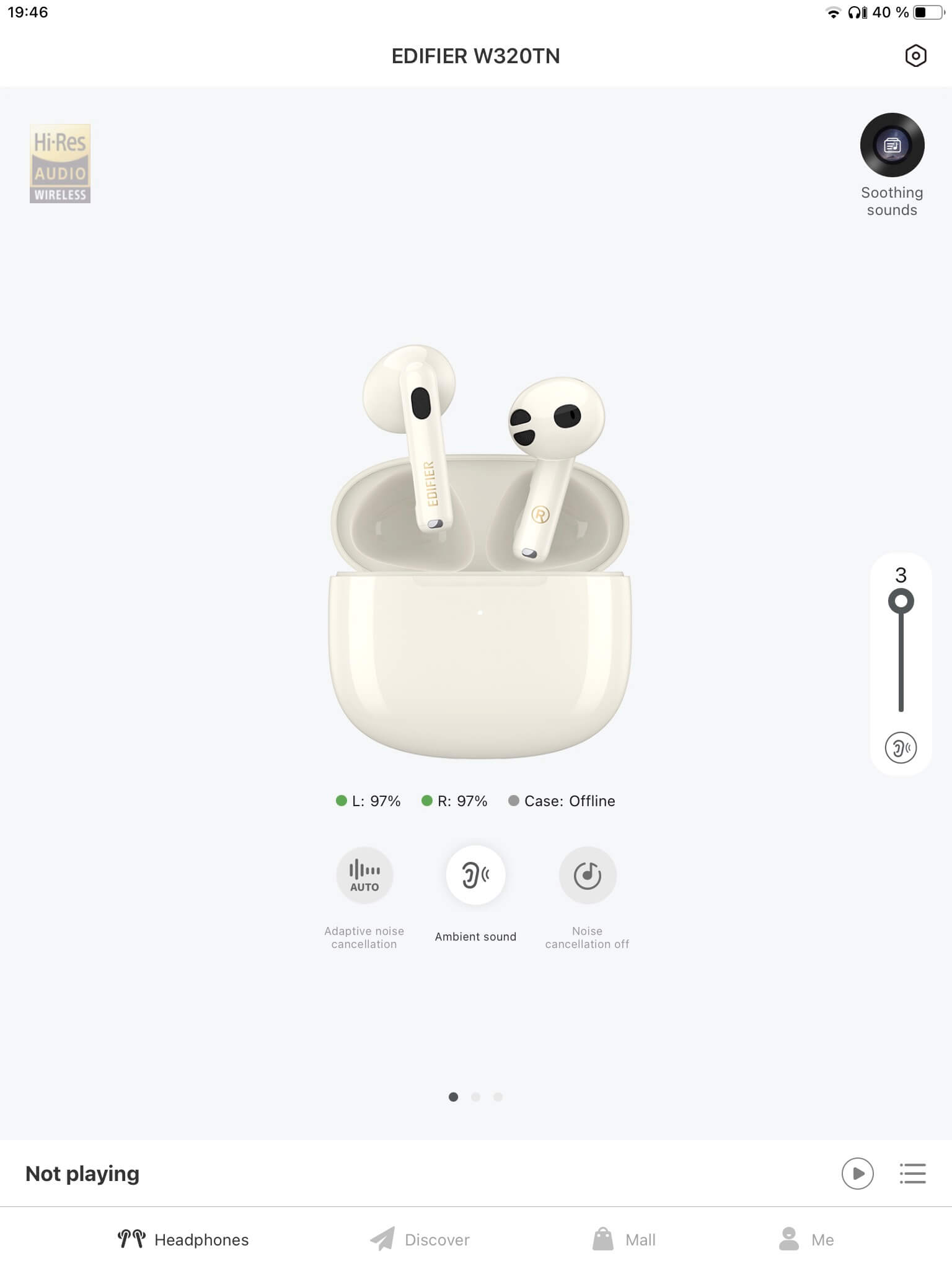 Neben der adaptiven Geräuschunterdrückung, die sich selbstständig reguliert, verfügen die Edifier W320TN über einen siebenstufigen Transparenzmodus, der sich über die App-Anbindung (Android und iOS) an die Umgebung anpassen lässt. Zur Klangregelung stehen darüber hinaus mit „Classic“, was der Standardeinstellung entspricht, „Pop“, „Classical“ und „Rock“ vier Modi zur Auswahl. Auf einen EQ für eigene Einstellungen muss bei diesem Modell hingegen verzichtet werden.