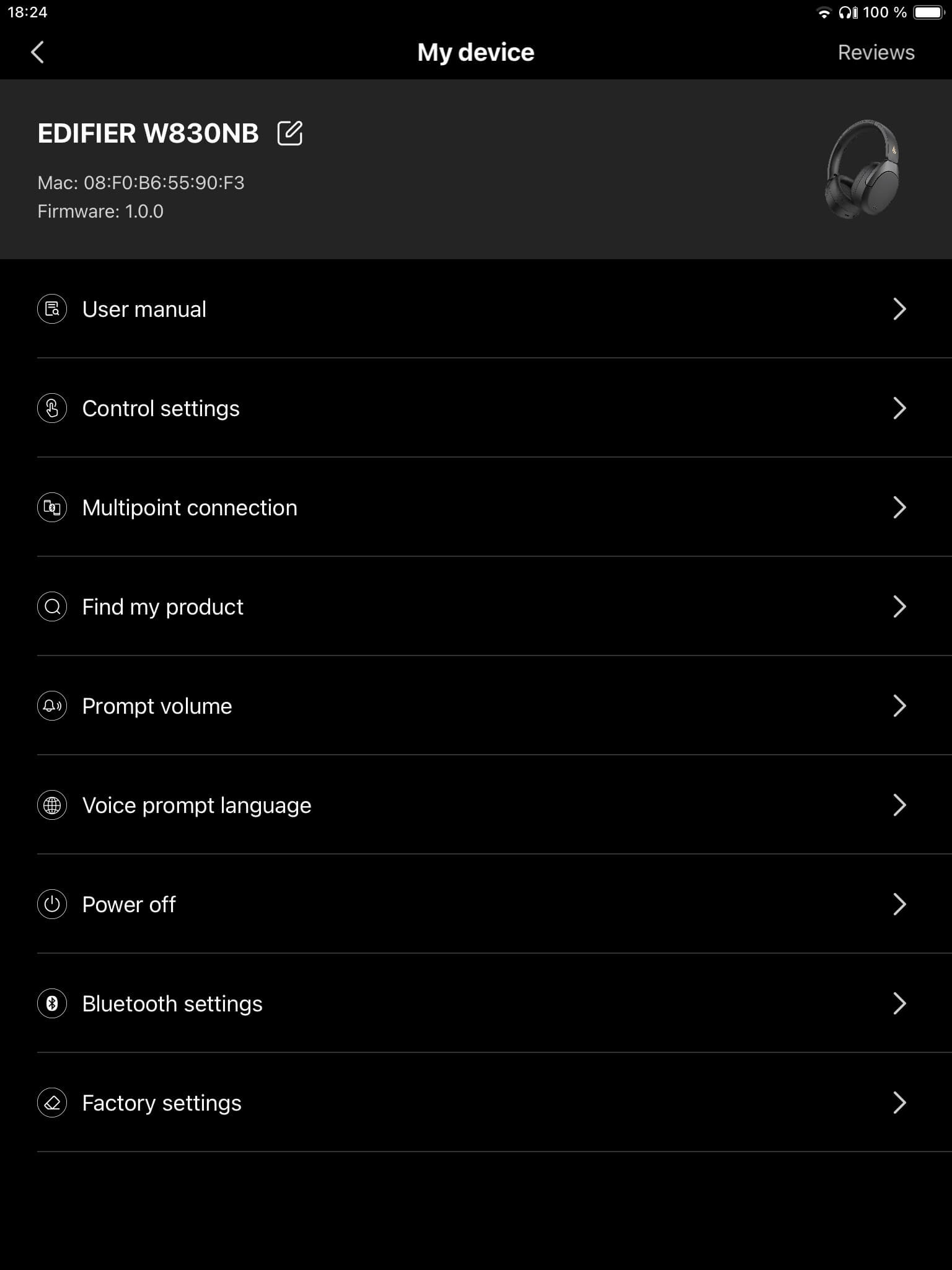 Über die Hörereinstellungen stehen noch ein Timer, eine Lautstärkeregelung und eine Suchfunktion zur Verfügung, die per Piepton beim Auffinden der Over-Ears behilflich sein kann. Zudem lassen sich über die App Multipoint-Verbindungen ein- oder ausschalten und Firmware-Aktualisierungen vornehmen. Auf Android-Geräten kann darüber hinaus der LDAC-Code aktiviert werden.