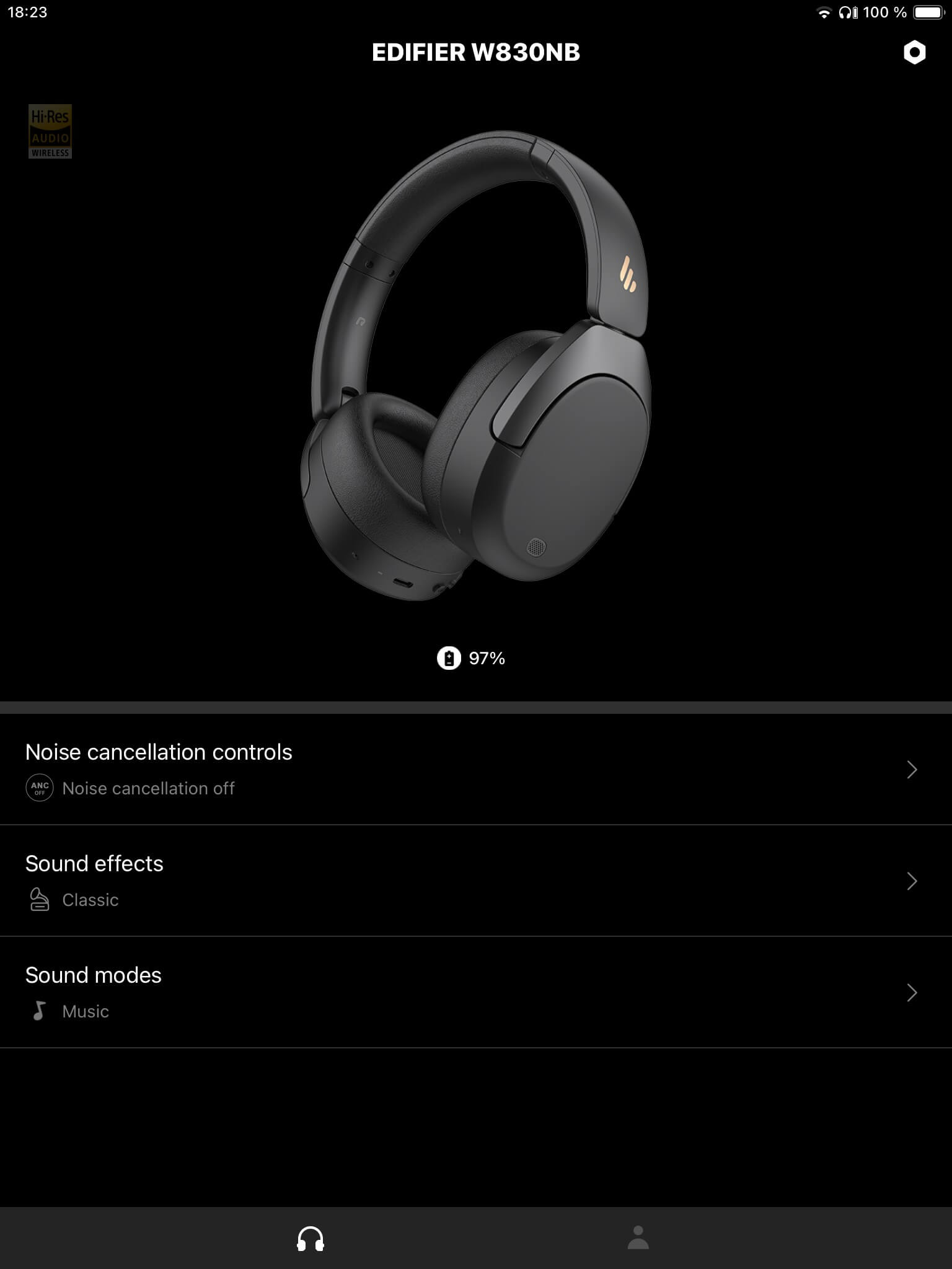Im Classic-Modus (Standardeinstellung) vermitteln die Edifier W830NB einen aufgeräumten, harmonischen Klangeindruck, der auch bei komplexeren Produktionen kein Gefühl der Enge aufkommen lässt. Dabei wirkt der Bassbereich leicht betont und reicht weit hinab, was bei modernen Musikstilen und actionreicher Medienkost ansprechend definiert klingt. Auch die Mittendarstellung erfolgt mit wohldosierter Energie und gibt Gesangsstimmen, Filmdialoge oder gesprochene Inhalte gut verständlich sowie mit einer angenehmen Grundwärme wieder. In den oberen Lagen werden zudem Akzente gesetzt, ohne vorlaut über das Ziel hinauszuschießen.