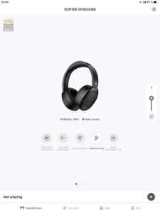 Die Geräuschkontrolle der Edifier Connect App (Android und iOS) umfasst mit „High“ und „Low“ zwei ANC-Modi, eine spezielle Variante für Windgeräusche und einen regelbaren Transparenzmodus mit sieben Intensitätsstufen. Darüber hinaus stellt die EQ-Sektion mit „Classic“ und „Dynamic“ zwei Klangmodi zur Auswahl, während das „Customized“-Setting vier Bänder für eigene Einstellungen zur Verfügung stellt, die mit Freunden ausgetauscht werden können. Neben der Anpassung des Multifunktionstasters, können Multipoint-Verbindungen (de-)aktiviert und ein Timer konfiguriert werden. Erfreulich ist, dass zudem ein Gehörschutz aktiviert werden kann, der die Wiedergabelautstärke auf 85 Dezibel begrenzt. Firmware-Updates lassen sich ebenfalls über die App-Anbindung vornehmen.