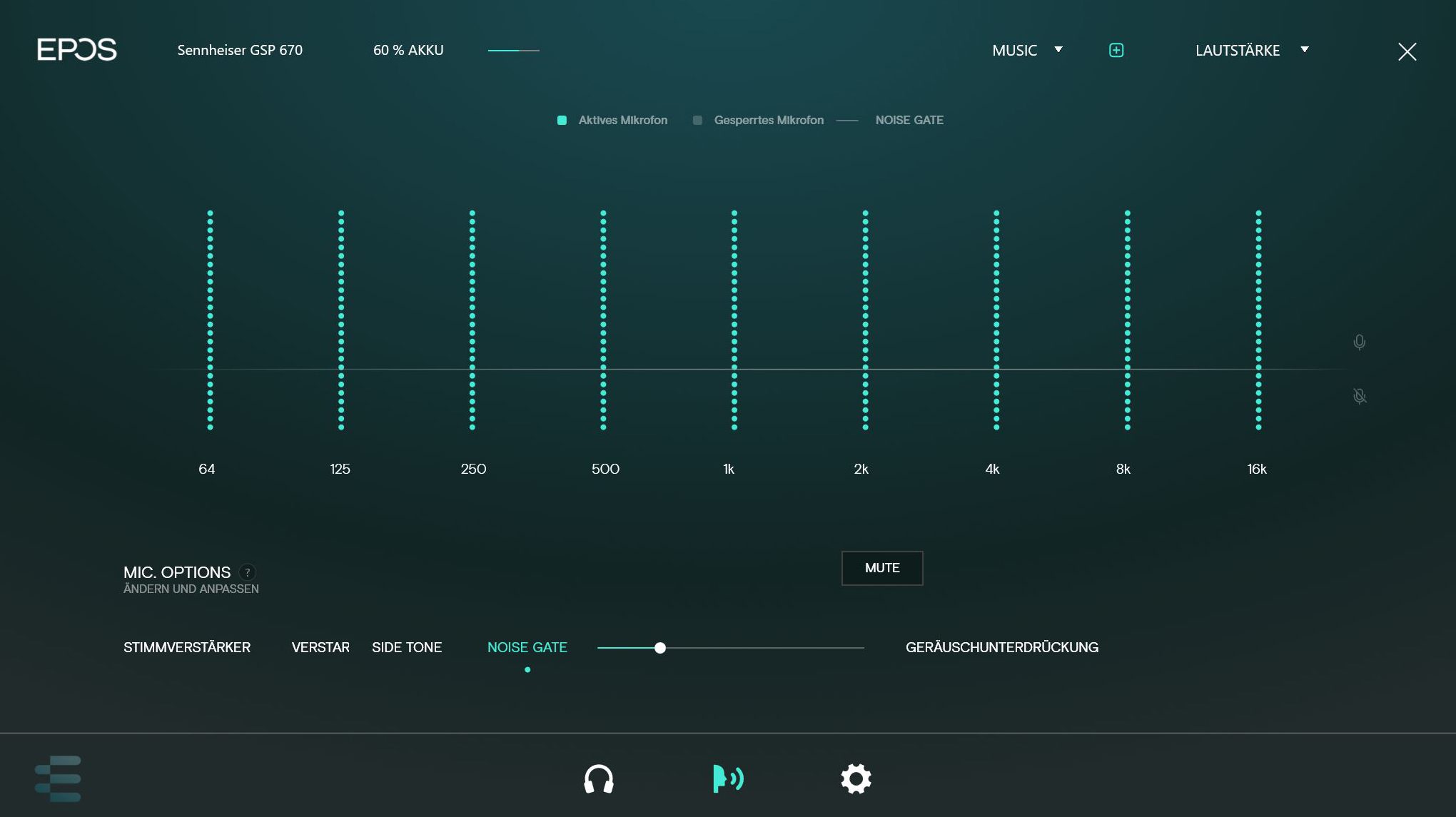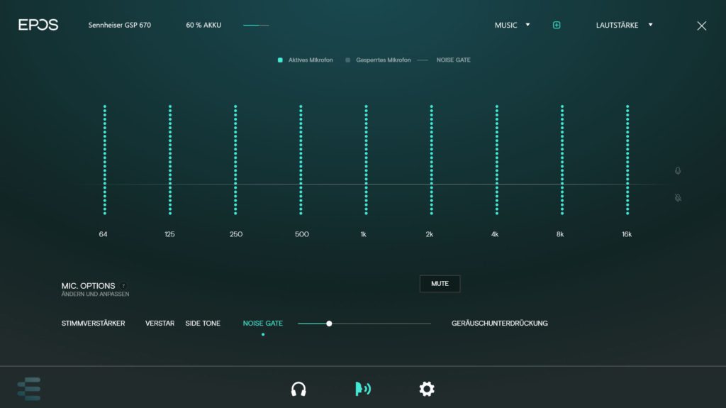 Das Mikrofon beim EPOS │ Sennheiser GSP 670 ist ebenfalls sehr gelungen: Die Qualität der Sprache ist sehr gut und mit Hilfe der verschiedenen Filter lässt sich in jeder Situation ein vernünftiges Signal in den Chat schicken. Natürlich kann man es in den Einstellungen auch übertreiben, aber dafür kann das Mikrofon ja nichts. Besonders das Noise Gate macht einen tollen Job und dank detaillierter Anzeige, ist es hervorragend auf die Umgebung einstellbar.
