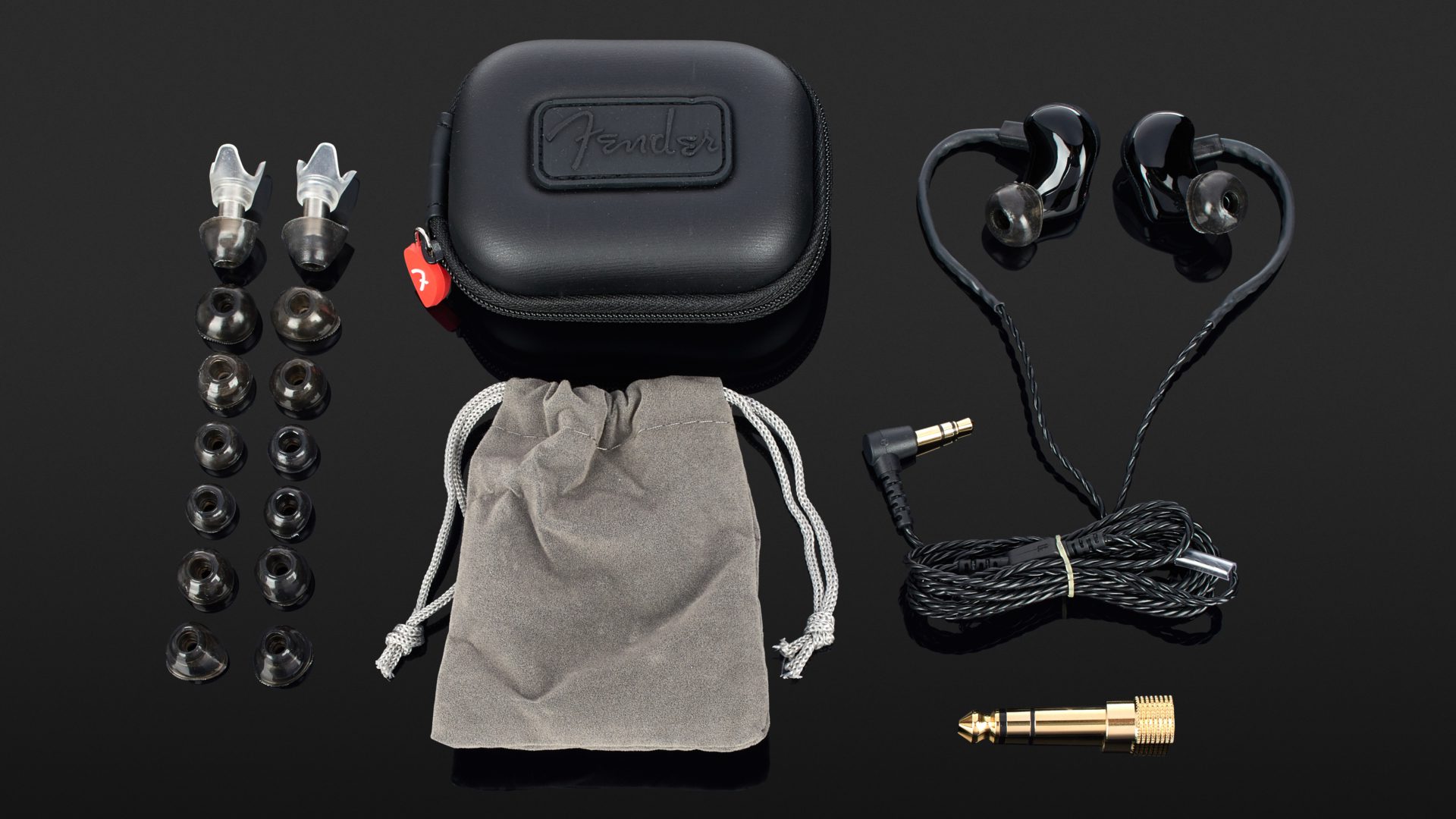 Im Lieferumfang befindet sich ein Beutel mit den erwähnten Ohrpolstern, außerdem bekommt man einen leider nur steckbaren Klinkenadapter, ein Putz-Tool und ein nettes, kleines Transport Case mit Fender-Logo. Als weitere Zugabe legt Fender zwei Gehörschutzstöpsel bei, die recht moderat, dafür aber sehr linear arbeiten.