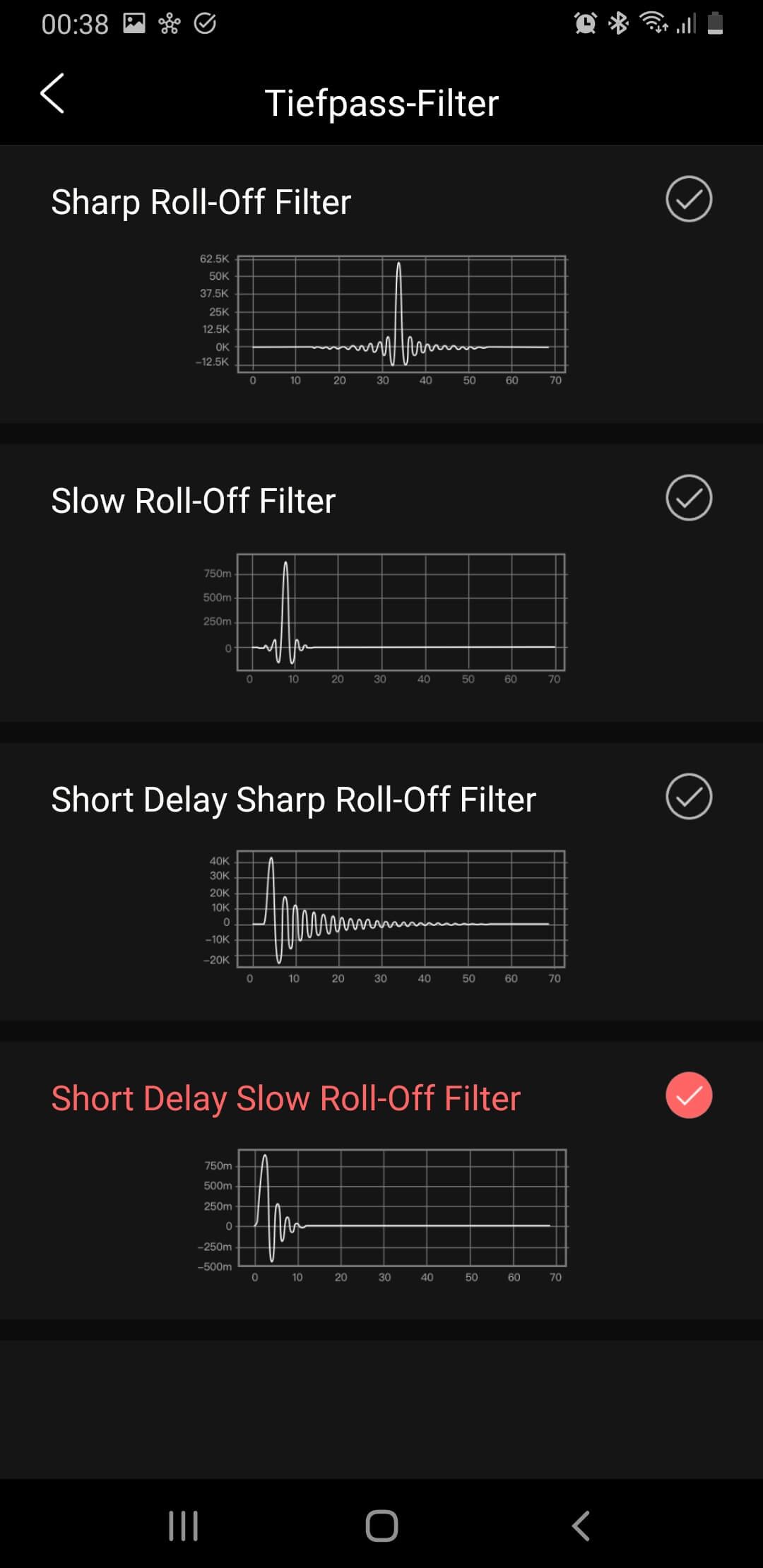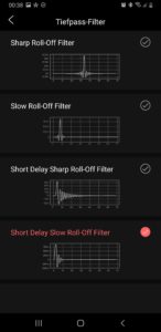 Solche Feinheiten lassen sich am Ende akustisch kaum noch unterscheiden, trotzdem ist es gut, hier die Wahl zu haben. Mir persönlich gefiel im Bassbereich übrigens die weiche (slow), phasenlineare (delay) Charakteristik am besten.