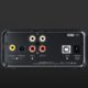 Die Rückseite bietet (digitale) koaxiale und optische S/PDIF-Eingänge, USB sowie Line-Ein- und Ausgänge im Cinchformat. In dieser Preisklasse findet man allerdings weder mehrere Kopfhörerausgänge noch symmetrische Anschlüsse. Hinzu kommt der Anschluss für das externe Netzteil.