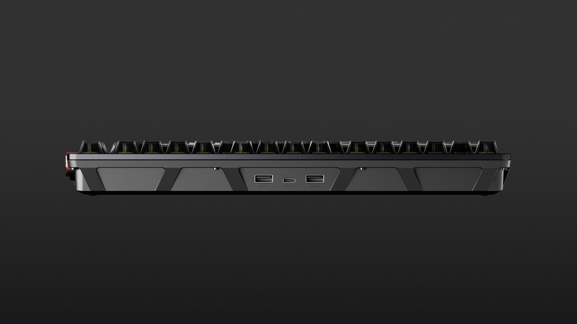 Auf der Rückseite stehen drei USB-Ports zur Verfügung: Der USB-C-Anschluss in der Mitte wird mit dem Rechner verbunden und sorgt somit für den benötigten Strom, während die beiden betagteren USB-A-Buchsen Mäuse, Funkadapter oder andere Peripherie aufnehmen.