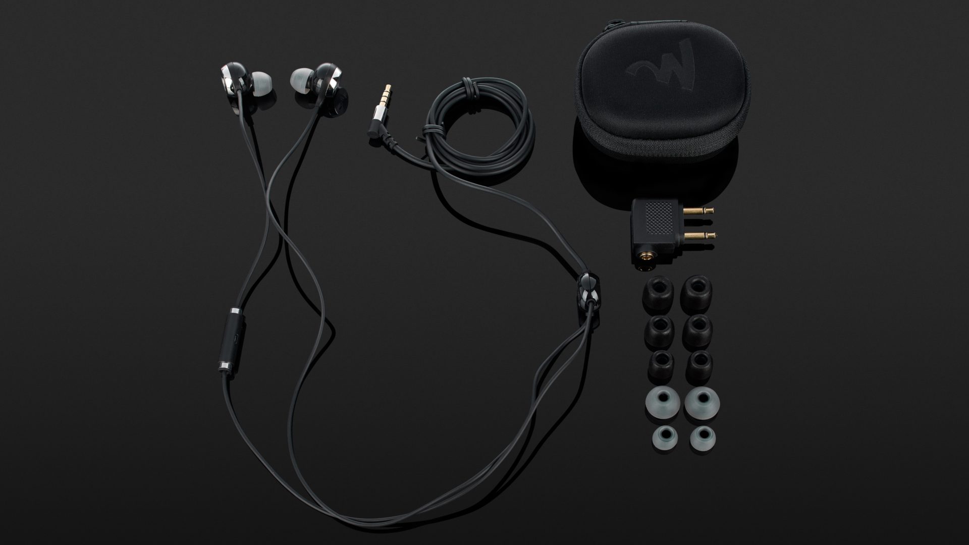 Auch beim Zubehör zeigt sich der Focal Sphear von seiner guten Seite: Neben jeweils drei Silikon- und Memory-Schaum-Stöpseln liegt dem Kopfhörer auch ein Flugzeug-Adapter bei. Verstauen lässt sich das Ganze bequem in einer kompakten Tragetasche.