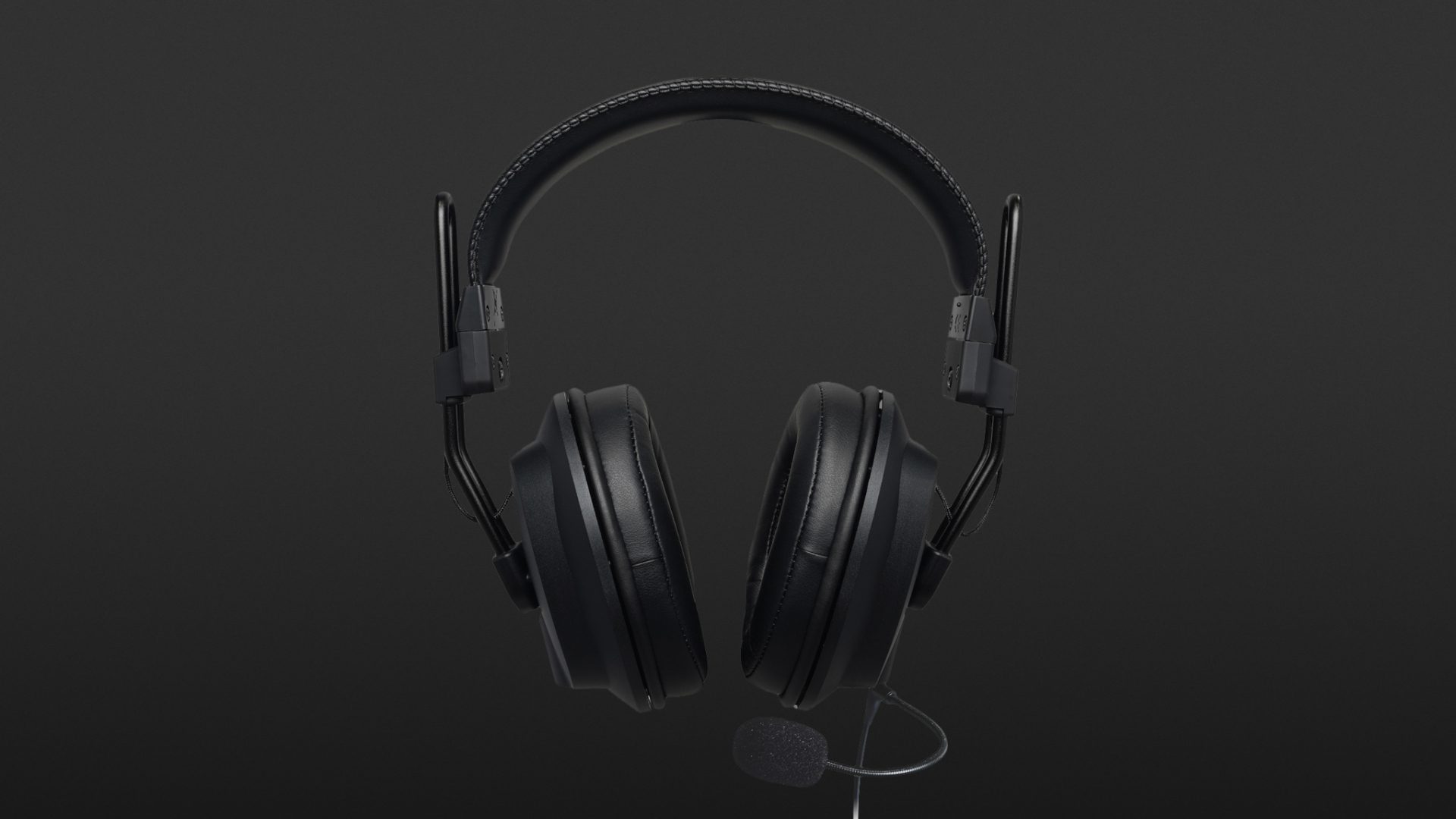 Für die stufenlose Größenverstellung sind zwei Hände nötig. Ohr- und Kopfpolster umschließen den Kopf satt und halten das Headset trotz 370 Gramm sicher. Lautstärkeregelung und Mute-Schaltung sind als Schieberegler ausgeführt und blind bedienbar.